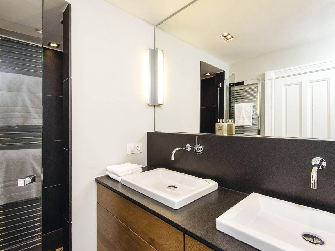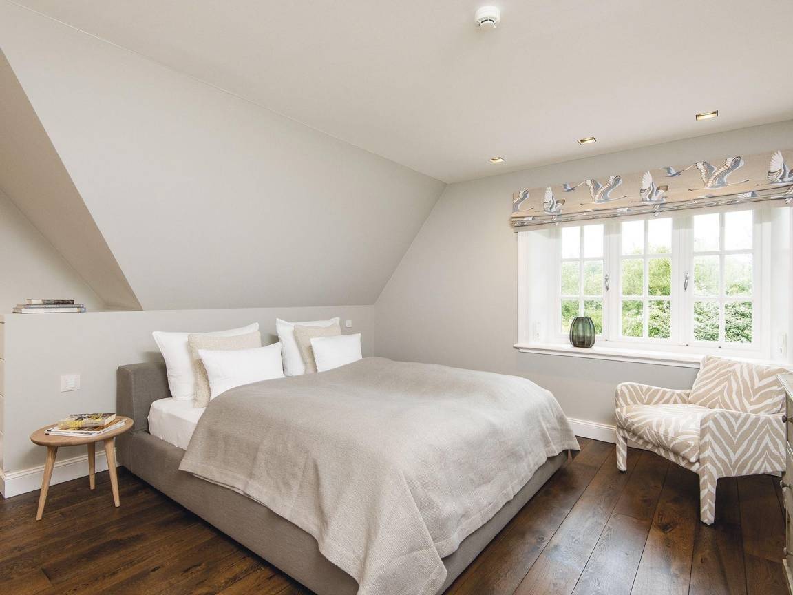 Das exklusive Hausteil mit Einzelhauscharakter befindet sich in ruhiger Lage im Hans-Hansen-Wai, gleich gegenüber des Avenariusparks. Das großzügige Quartier besticht durch eine überaus hochwertige geschmackvolle Einrichtung und seine hellen lichtdurchfluteten Räume, welche mit einem rustikalen Eichenholz-Schlossdielenboden ausgelegt sind. Im Erdgeschoss überzeugt das Hygge Hüs mit einem eleganten Essbereich, der in einen großzügigen Wohnbereich mit Leseecke, TV und Sofalandschaft übergeht. Von hier erreichen Sie auch die Westterrasse im abgeschlossenen Garten. Außerdem auf dieser Etage: Ein Gäste-WC, sowie eine komfortable und bestens ausgestattete Küche mit einer weiteren Sitzecke. Von hier gelangt man auch auf die kleine Frühstücksterrasse, wo man seinen Kaffee in schönster Morgensonne genießen kann. Im Obergeschoss finden Sie zwei großzügige Doppelschlafzimmer, davon eines mit Wannenbad en suite und ein separates Duschbad. Zwei weitere Doppelschlafzimmer und ein schönes Duschbad finden Sie im Untergeschoss. Dieses Quartier ist exklusiv ausgestattet und mit viel Stil eingerichtet worden.