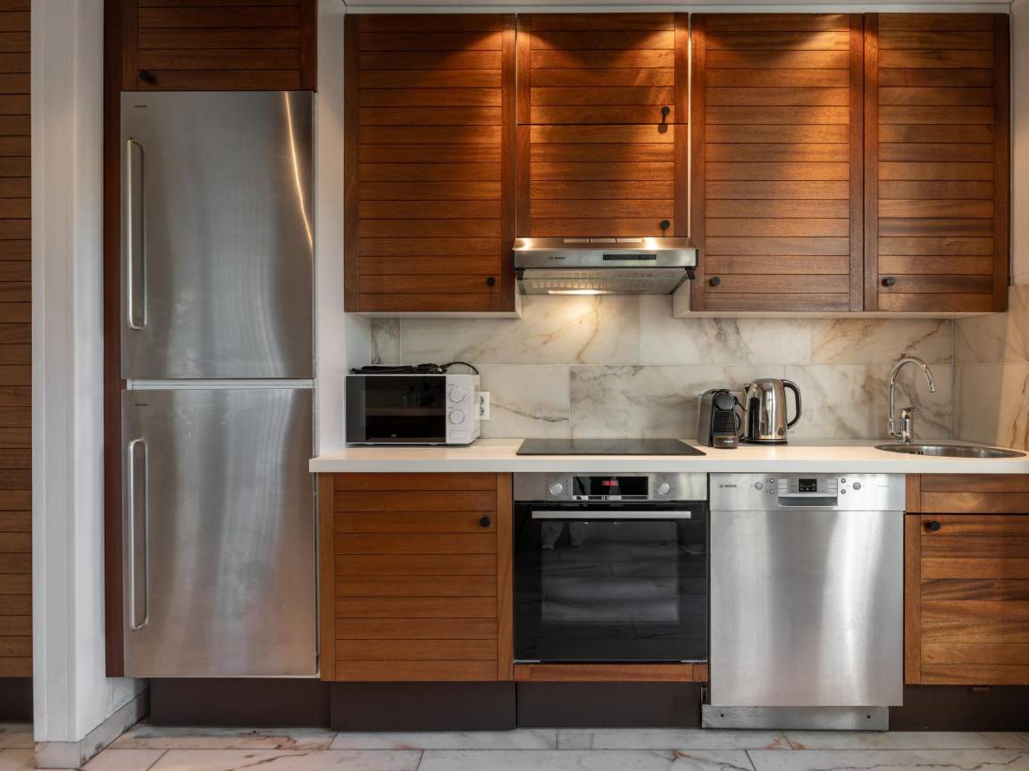 Layout : Parterre: Wohnzimmer, offene Küche mit Kaffeemaschine(nespresso cups), Backofen, Mikrowelle, Geschirrspüler, Kühl-/Gefrierkombination , Schlafzimmer mit 2x Einzelbett , Badezimmer mit Badewanne, Dusche, Waschbecken , Toilette
