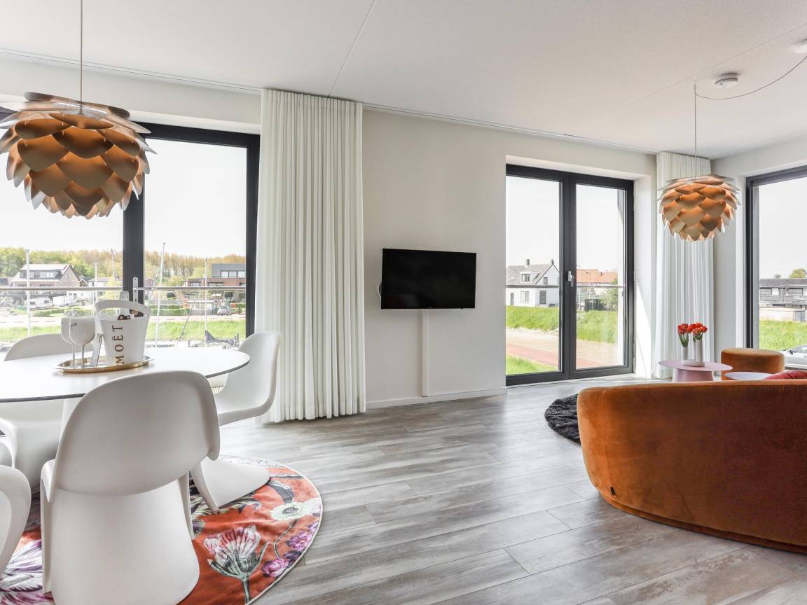 Hausbeschreibung : Luxuriös eingerichtetes Design-Apartment im ersten Stock mit Blick auf den Hafen von Kamperland. Das helle Wohnzimmer mit großen Fenstern und offener Küche geht über in einen Balkon, von dem aus man über das Wasser und die Boote blickt. Mit zwei komfortablen Schlafzimmern, einem modernen Badezimmer und einem eigenen Parkplatz für zwei Autos verbringen Sie hier Urlaub in aller Ruhe an einem Topstandort am Hafen