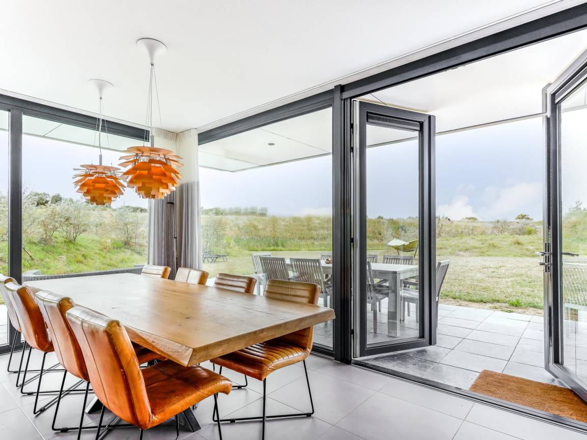 Hausbeschreibung : Moderne einstöckige 8-Personen-Villa im Park De Groote Duynen, nur wenige Gehminuten vom Nordseestrand entfernt. Das Haus verfügt über 4 Schlafzimmer und 2 Bäder, eines davon ist ensuite. Helles Wohnzimmer mit Gaskamin und offener Küche (Quooker, Geschirrspüler, Kombi-Backofen) mit Flügeltüren zur Terrasse und großem Garten rundherum. Parkplatz für 2 Autos und Ladestation vorhanden