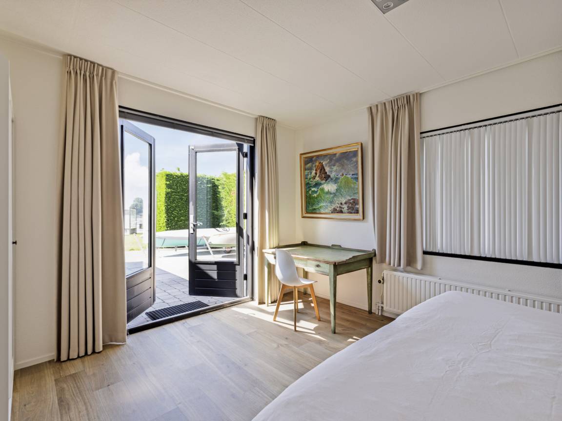 Hausbeschreibung : Einzigartige freistehende 10-Personen-Villa (ca. 216 m²) direkt am Veere-See mit eigenem Bootssteg (gemeinsam mit den Nachbarn). Das Haus hat 5 Schlafzimmer, 3 Bäder und eine geräumige Küche mit Blick auf den Garten und das Wasser. Vom Garten aus können Sie direkt in den See gehen oder auf Ihr Boot steigen. Die Villa bietet einen Parkplatz, einen großen Garten und einen gemütlichen Gaskamin.