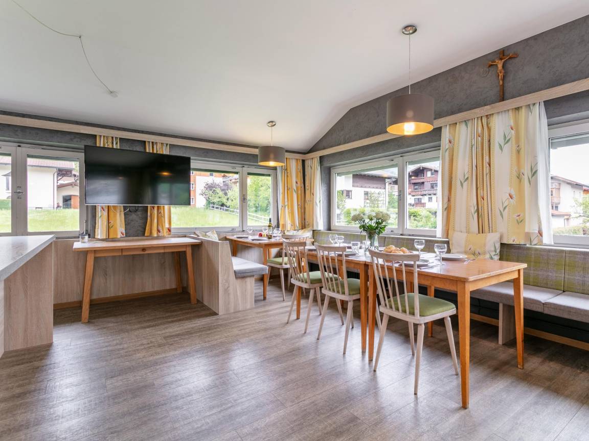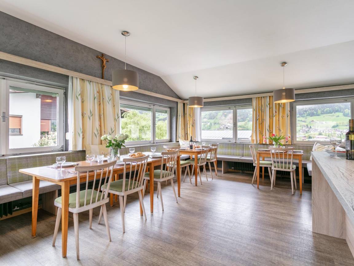 Hausbeschreibung : Willkommen im großzügigen Ferienhaus in Fügen – ideal für große Familien oder Reisegruppen! Es erwarten Sie 9 gemütliche Schlafzimmer, teils mit eigener Dusche, WC oder fließendem Wasser. Der große Aufenthaltsraum mit offener Küche lädt zum gemeinsamen Kochen und Beisammensein ein. Nur 1,6 km von der Spieljochbahn entfernt – perfekt für Skiurlaub & Sommerabenteuer in Tirol!