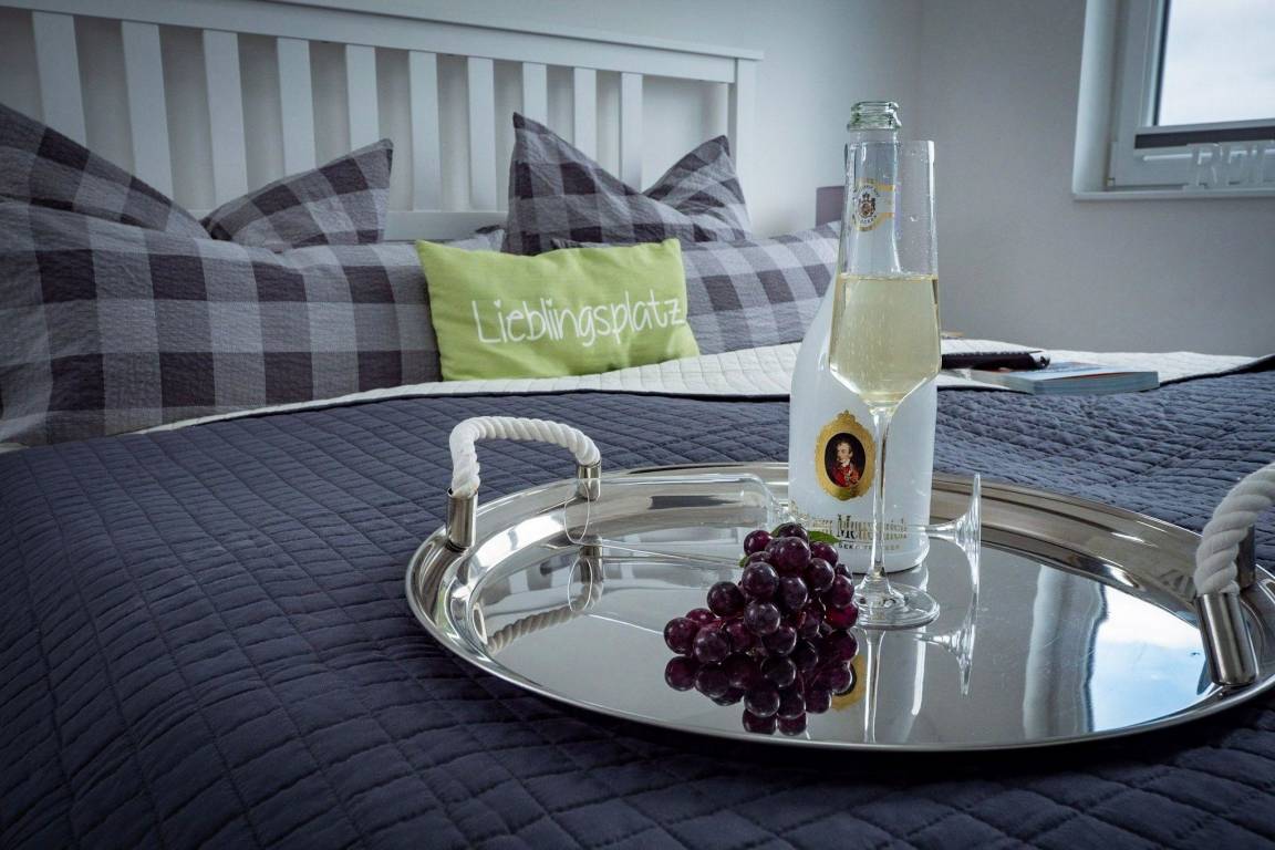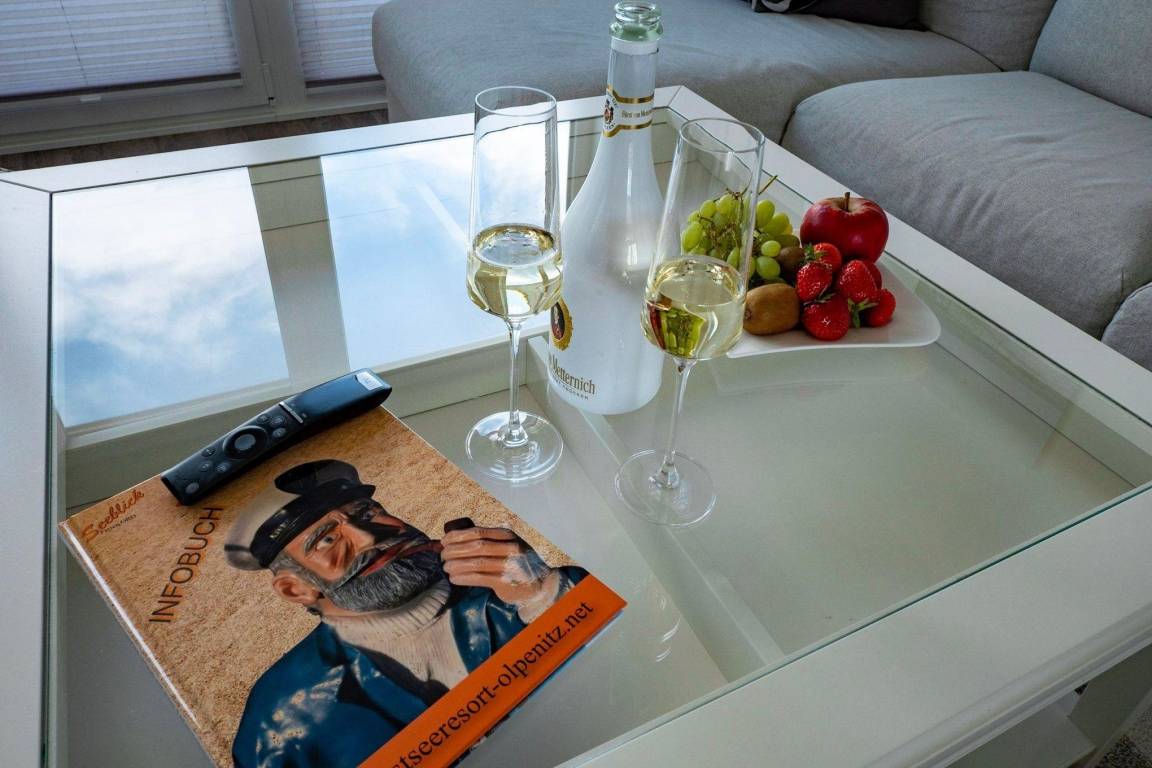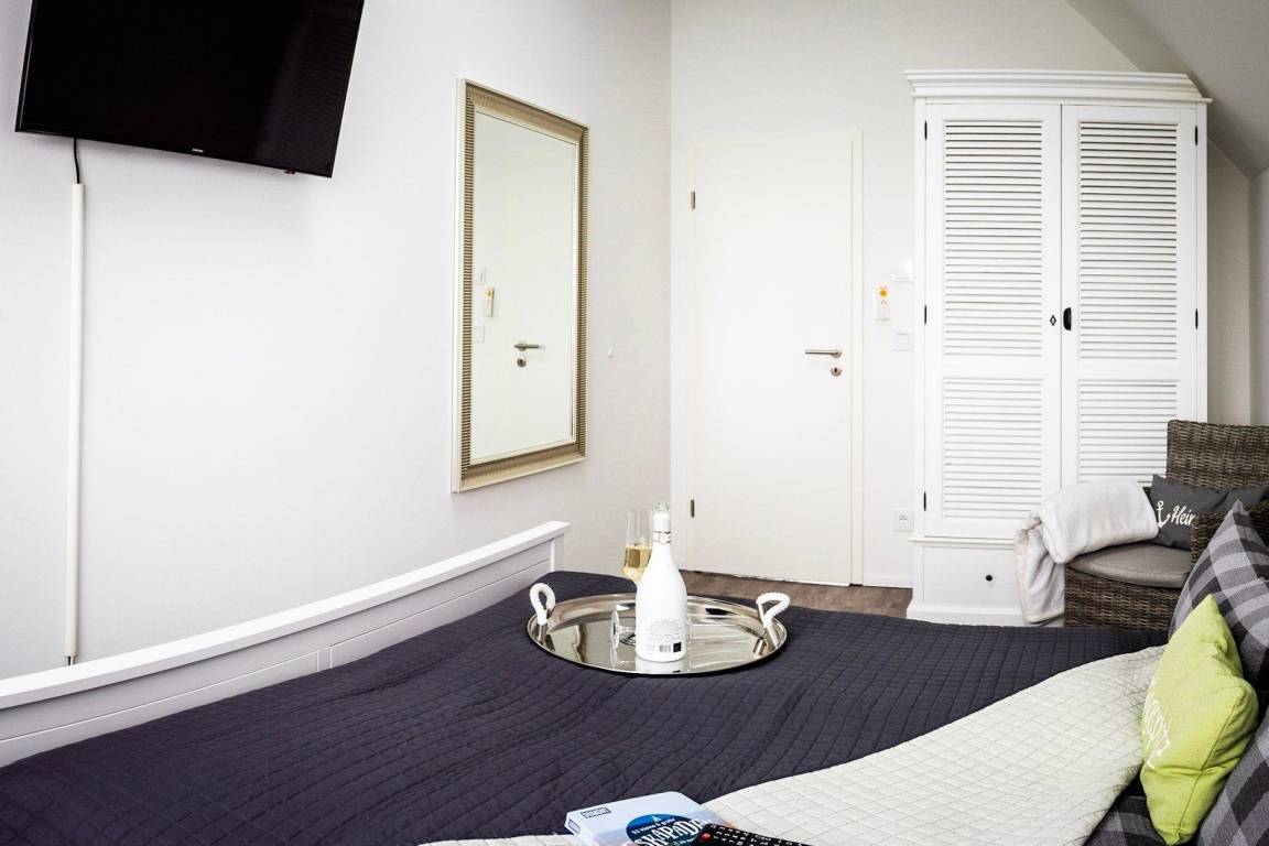 Bei dieser Wohnung sind spektakuläre Sonnenlichtspiele durch die zwei Balkone in Süd- und Nordausrichtung zu erwarten. Der Einrichtungsstil entspricht der exklusiven Lage der Ferienwohnung: Landhausstil gepaart mit klaren Farben und Formen versprechen Ruhe und Rückzug, während einzelne Farbakzente für erfrischende Leichtigkeit sorgen.