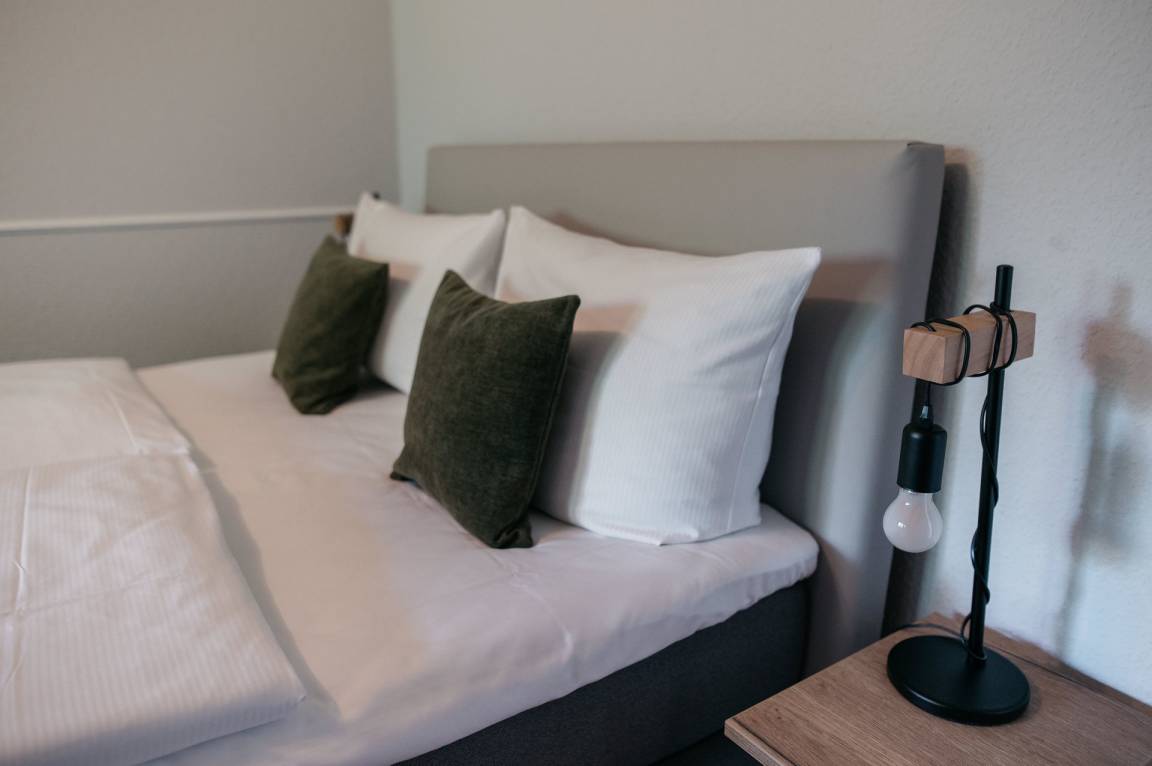 Unsere Doppelzimmer Budget sind ca. 18 qm groß und mit 1,40 m breiten Betten ausgestattet. Diese eignen sich perfekt für Einzelreisende, die ein wenig mehr Platz brauchen, oder für Paare, die sich ganz besonders gerne haben.