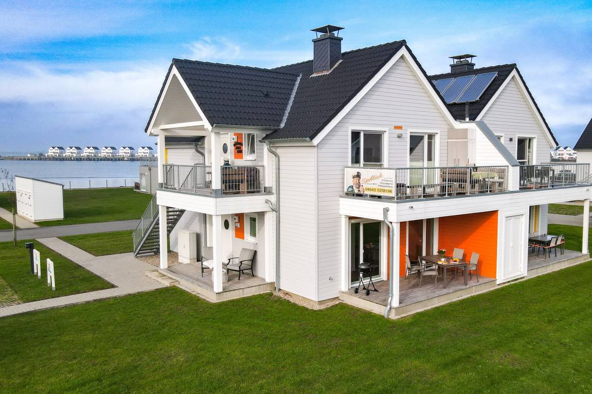 Auf der Kapitäns-Halbinsel des OstseeResort Olpenitz, in der Kapitänsstraße 50 gelegen, bietet diese 3 Zimmer Ferienwohnung MEERwert by Seeblick Ferien; von allen Sternhäusern hier den mit Abstand schönsten Blick auf die Marina und die beste Lage, einen Anlaufpunkt für Erholungsurlaub auf 77m² im Erdgeschoss.