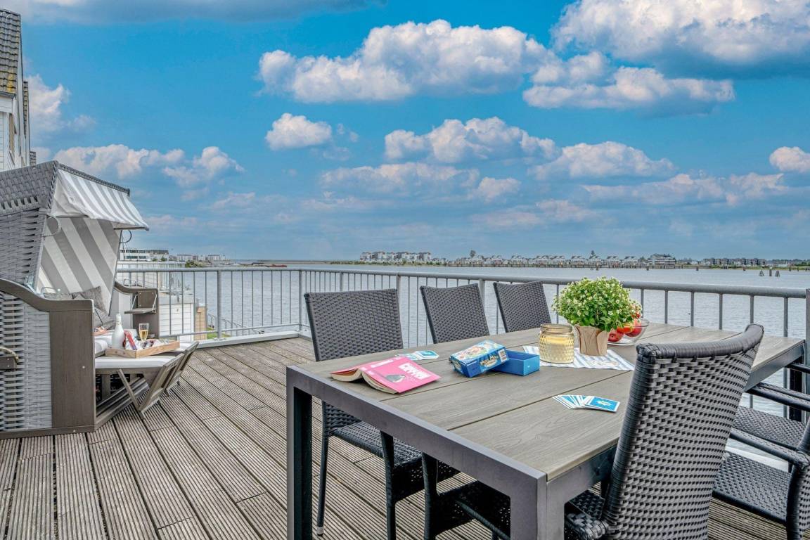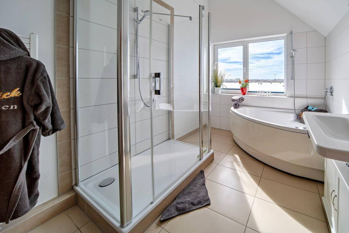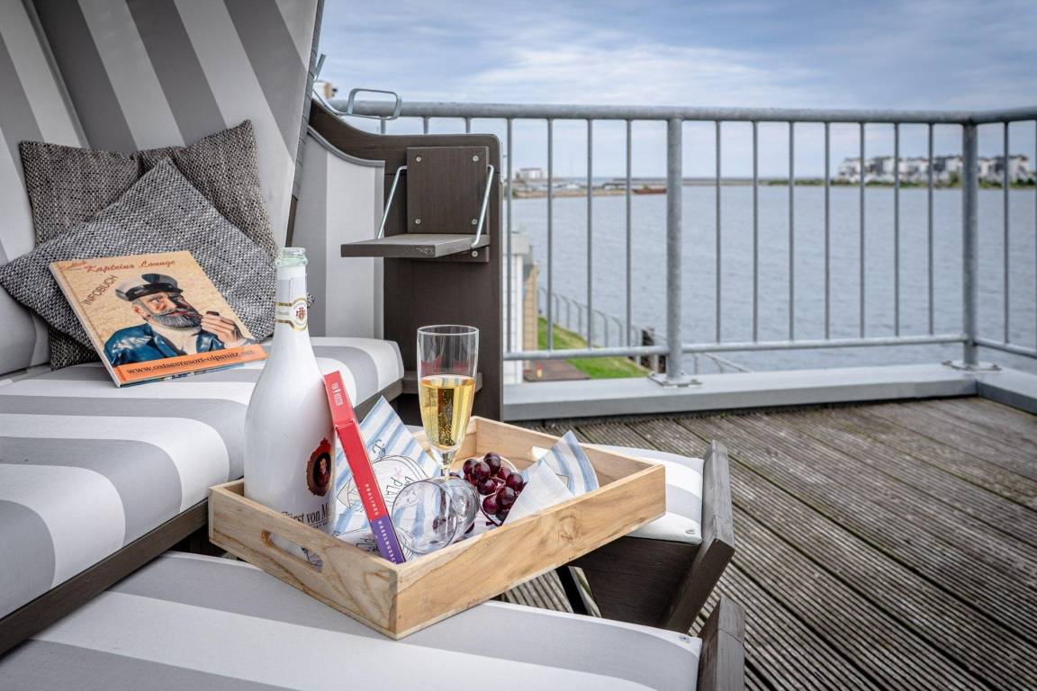 Die Ferienwohnung Kaptein's Lounge bietet auf 93 qm Wohnfläche eine einzigartige Atmosphäre auf zwei Ebenen im Ober- und Dachgeschoß. Das lichtdurchflutete Wohnzimmer mit Kamin lädt zum Verweilen ein und sorgt für einen gemütlichen Treffpunkt. Angrenzend befindet sich der Essbereich mit offener Küche, der Zugang zur Terrasse mit herrlichem Panoramablick bietet. In der oberen Etage befinden sich zwei Schlafzimmer sowie ein großzügiges Wellness-Bad mit Dusche, großer Badewanne mit Whirlpoolfunktionen und einer Infrarotsauna. Das Masterbedroom ist mit einem TV ausgestattet und gewährt einen hervorragenden Blick auf die Marina. Bitte beachten Sie, dass Strom- und Wasserkosten separat nach Verbrauch abgerechnet werden. Bettwäsche und Handtücher sind gegen Gebühr erhältlich, ebenso wie ein Saunapaket für zusätzlichen Komfort. Hunde sind willkommen und können gegen eine Gebühr mitgebracht werden.