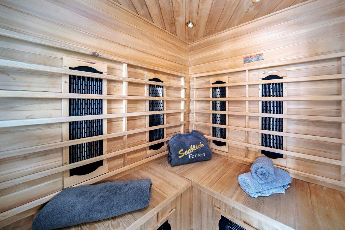 Die lichtdurchflutete Maisonette-Wohnung mit Kamin, einer großzügigen Terrasse und einem Wellness-Bereich mit Infrarotsauna verspricht Erholung pur. Naturliebhaber und Wassersportenthusiasten kommen hier ebenfalls auf ihre Kosten, während Hunde herzlich willkommen sind, gegen eine geringe Gebühr.