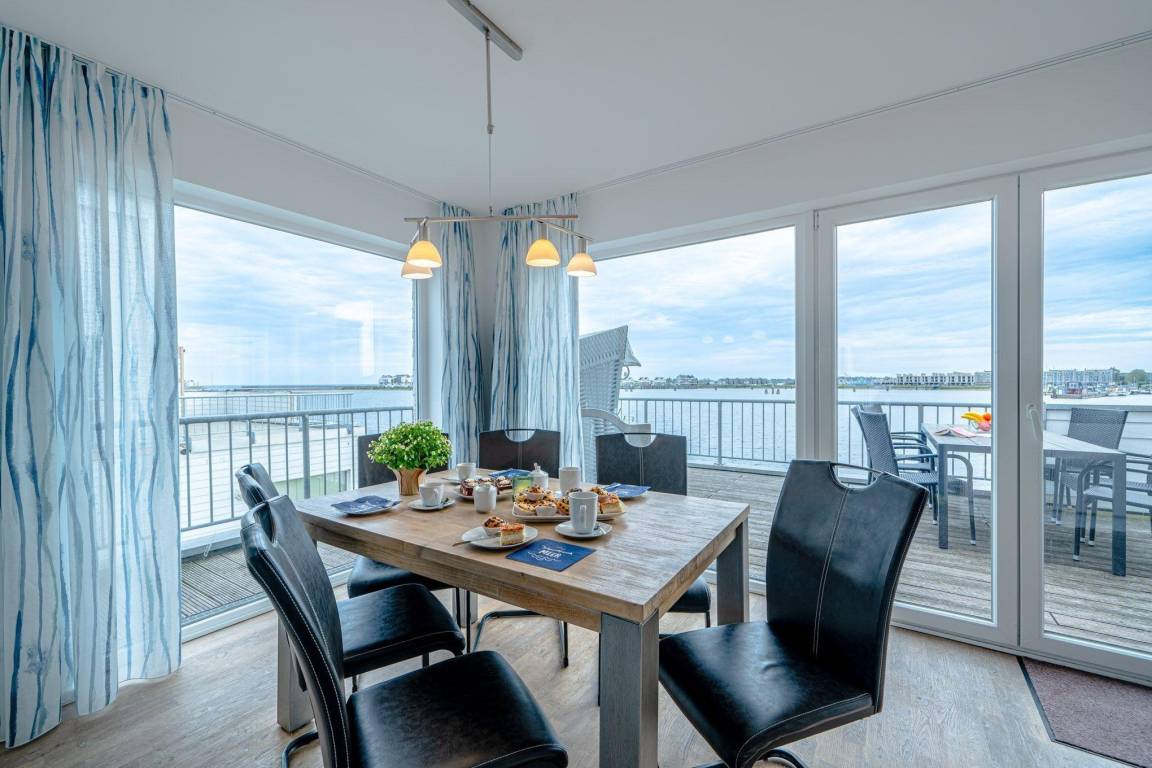 Die Kaptein's Lounge bietet für bis zu 6 Personen unvergleichlichen 180-Grad-Panoramablick auf Schlei und Hafen, Kamin, Whirlpool und Infrarotsauna – der perfekte Ort für Entspannung und Genuss.
