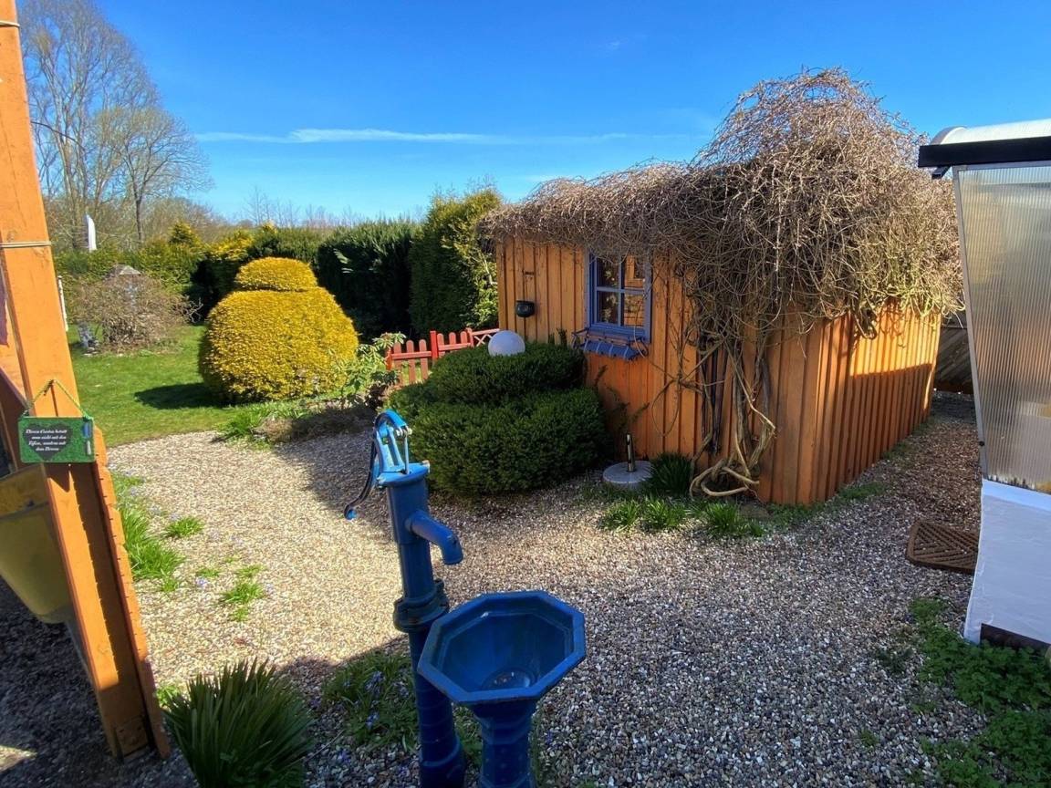 Das kleine gemütliche Ferienhaus - ein ehemaliges "Knechtenhaus" - verfügt über eine Wohnfläche von 84 qm und ist für bis zu sechs Personen ausgestattet. Genießen Sie die Ruhe und entspannen Sie sich in dem großen Garten (ca. 650 Quadratmeter), im Strandkorb oder auf der großen Wiese. Der Blick über Wiesen und Felder ist wunderschön - besonders dann, wenn der Raps blüht.