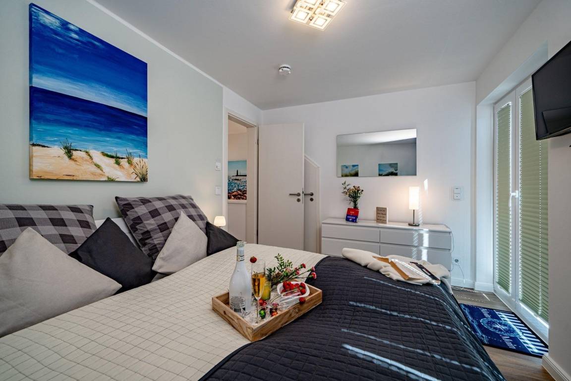 Die luxuriöse Doppelhaushälfte "Schleivilla Hafenblick by Seeblick Ferien ORO" bietet auf 102 m² einen offenen Wohn- und Essbereich mit direktem Zugang zur Terrasse und einer voll ausgestatteten offenen Küche. Der gemütliche Wohnbereich ist mit einer Sofalandschaft und einem Smart-TV ausgestattet; ein Kaminofen sorgt für wohlige Wärme. Im ersten Obergeschoss befinden sich zwei Schlafzimmer mit Wasserblick, jedes mit Flatscreen-TV und verdunkelbaren Plissees. Ein modernes Wellness-Badezimmer mit Dusche und finnischer Saunakabine sorgt für zusätzlichen Komfort. Die gesamte Unterkunft ist mit Fußbodenheizung ausgestattet. Ein Gäste-WC und eine Waschmaschine stehen im Erdgeschoss bereit. Praktische Annehmlichkeiten umfassen zwei kostenfreie Pkw-Stellplätze, einen abschließbaren Fahrradschuppen sowie eine E-Ladesäule. Die Villa eignet sich ideal für Familien oder Gruppen, die gemeinsam Urlaub erleben und dennoch getrennt wohnen möchten.