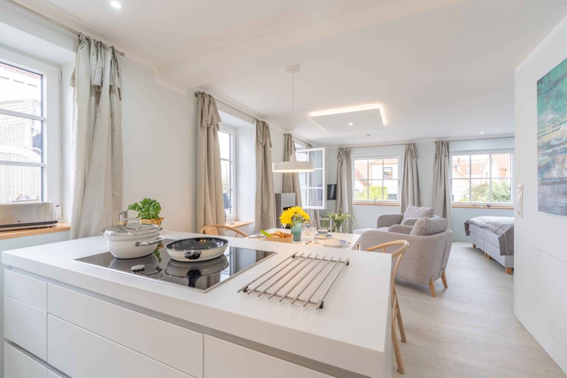 „Das Appartement liegt nah am Zentrum und dennoch ruhig. Es ist hell, freundlich und sehr geschmackvoll eingerichtet. Der sehr freundliche Hausmeister hat uns begrüßt und uns alles gezeigt. Wir haben uns vom ersten Augenblick an sehr wohl gefühlt. Die kleine Dachterrasse lädt zum Verweilen ein. Der toll gestaltete Innenhof ist einladend. Gut, dass eine Garage zur Verfügung steht. Wir würden jederzeit gern wieder in diesem tollen Appartement Urlaub machen.“