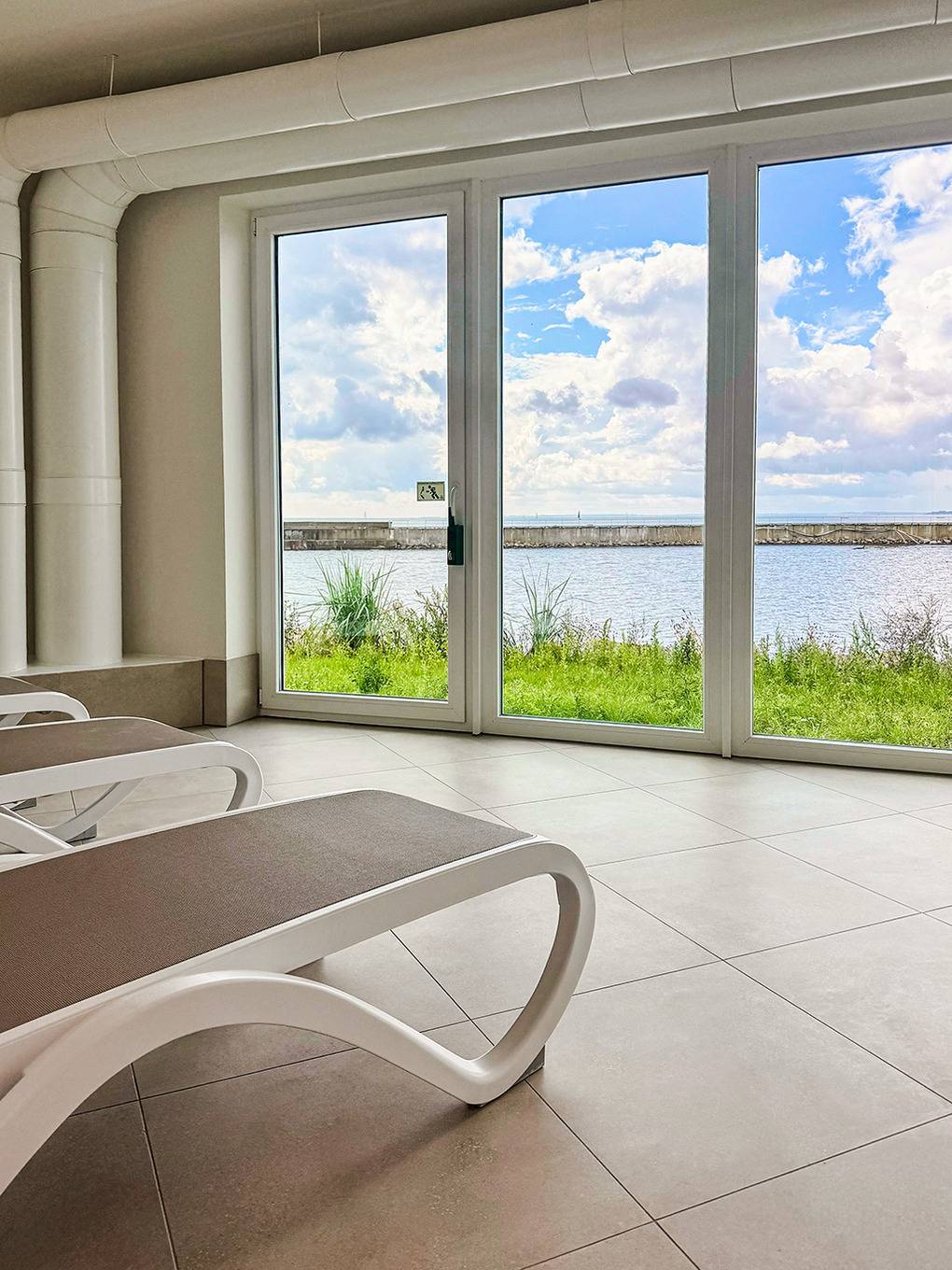 Haus: Moderne Residenz mit Pool und Sauna, bestehend aus 4 Apartmenthäusern mit hochwertigen Ferienwohnungen. Alle Wohnungen mit herrlichem Wasserblick, geschmackvoller Einrichtung und komfortabler Ausstattung, teils Sauna. Sat-TV mit Sky-Empfang, kostenloser Internetzugang über W-Lan. Zentralheizung. Balkon oder Terrasse (Sitzmöbel). 1 Pkw-Stellplatz/Fewo (Tiefgarage oder Außenstellplatz). Im Haus: Aufzug, Fahrradkeller, Münz-Waschmaschine/Trockner. Schöner Freizeitbereich in einem der Häuser mit Schwimmbad vor Panoramafenstern zur Ostsee, Sauna, Ruheraum (alles kostenfrei nutzbar).