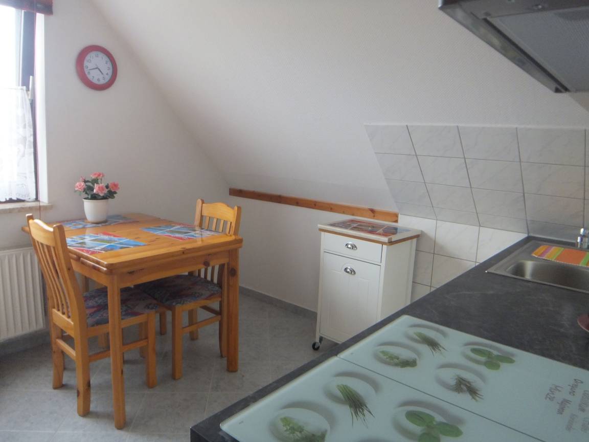 Die 2-Raum-Ferienwohnung ist über einen eigenen Eingang zu erreichen. Alle Zimmer sind hell und freundlich eingerichtet und haben Dachschrägen.