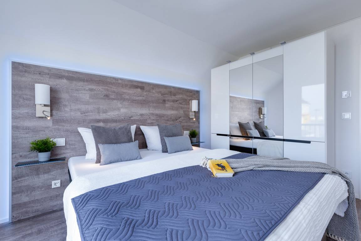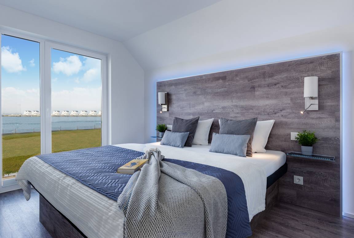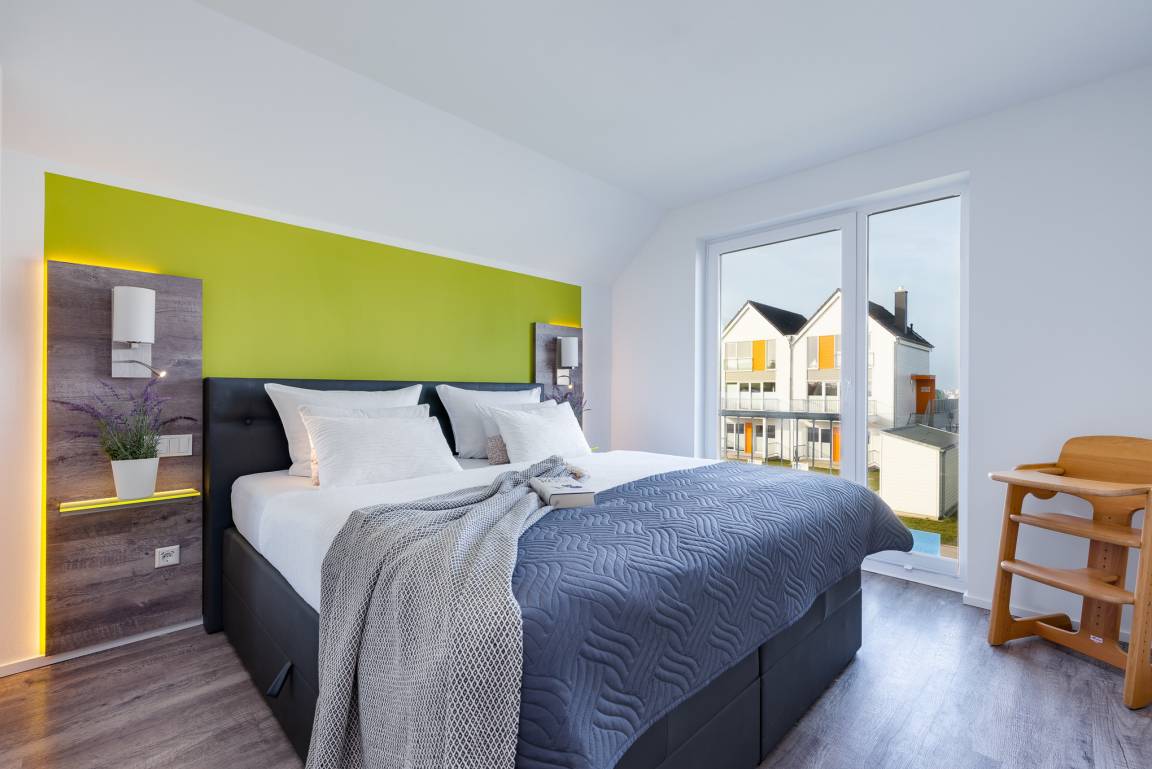 Allergikerfreundlich, E-Auto Ladestation, hochwertige Einrichtung, Wasserbett, Boxspringbett, Design-Küche, Kamin , 3 TVs, Sauna, bodengleiche XXL Wellness Dusche, direkter Wasserblick, unmittelbar am Strand und Hafenpromenade, Ambiente Beleuchtung, Fahrradschuppen, , Grünfläche, 2 Balkone, ganztags Sonne, Osteeresort Olpenitz