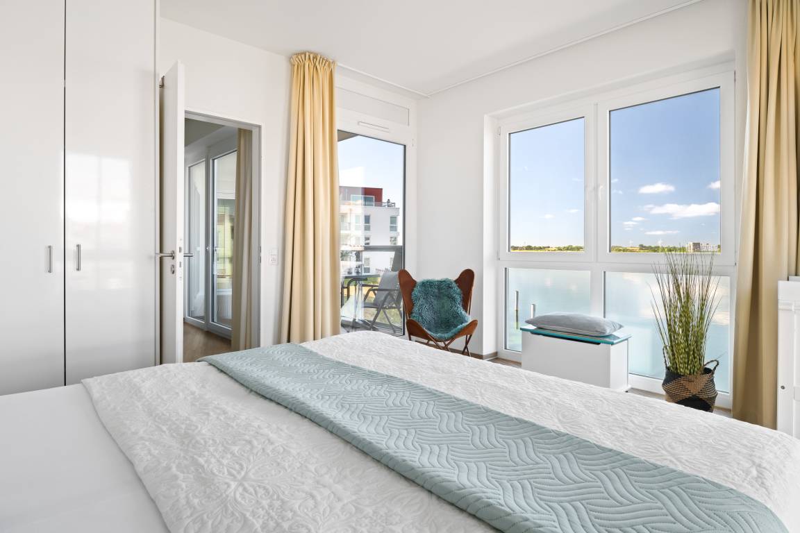 Traumwohnung direkt am Wasser mit Panorama-Wasserblick aus jedem Raum, großer Süd-West-Balkon - Wellness pur! Ab Mitte Juni 2025 mit kleinem Schwimmbad und 2 Saunen zur kostenlosen Nutzung im Wellnessbereich!