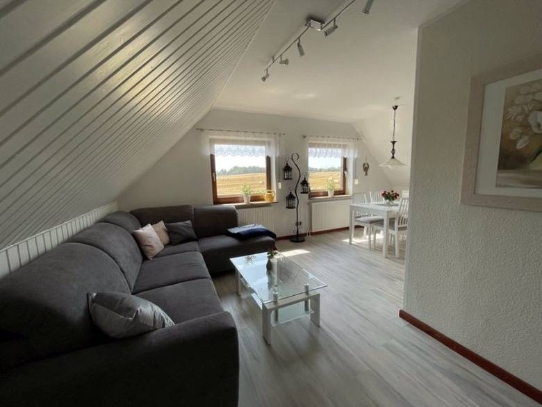 Die helle und freundliche Ferienwohnung verfügt über ca. 70 qm. Sie bietet ein Schlafzimmer mit Doppelbett, das auch als zwei Einzelbetten nutzbar ist, ein Zimmer mit Schlafsofa mit einer Liegefläche von 1,50m und ein großes Wohn- und Esszimmer. Die neue Einbauküche ist gut ausgestattet. Ein Geschirrspüler ist auch vorhanden. Das Badezimmer hat eine Badewanne und eine separate Duschkabine. Anreise nach Absprache. Abreise bis 10 Uhr.