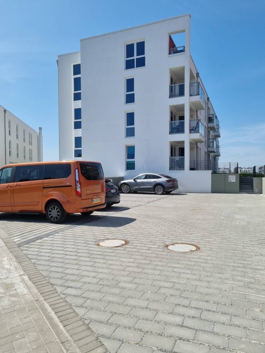 Sie parken direkt kostenlos vor der Wohnung auf Parkplatz Nr. 1 an der Appartementanlage Nr. 3. Von dort können Sie direkt über die kleine Treppe auf die Terrasse der FEWO gelangen oder Sie nutzen den Haupteingang des Hauses (Fahrstuhl vorhanden). Die Wohnung ist barrierearm, das Tür- Innenmaß beträgt 80cm, eine ebenerdige Dusche ist vorhanden.