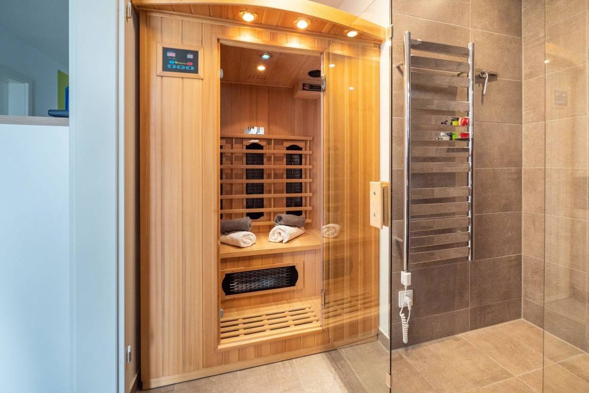 Die Ferienwohnung "Kapitän James Cook" im OstseeResort Olpenitz bietet auf 82 m² einen stilvollen Rückzugsort in der ersten Etage. Sie verfügt über zwei gut gestaltete Schlafzimmer, eines mit einem Wasserbett (1,80 x 2,20) und das andere mit einem Boxspringbett (1,80 x 2,00) sowie einem 32 Zoll Smart TV. Das Badezimmer beeindruckt mit einer bodengleichen XXL Wellnessdusche und einer Infrarotsauna. Im lichtdurchfluteten Wohn- und Essbereich sorgt ein Kaminofen für gemütliche Atmosphäre. Die offene Küche ist modern ausgestattet und lädt zum gemeinsamen Kochen ein. Zur weiteren Ausstattung zählen ein 42 Zoll Smart TV, eine Musik-Anlage sowie ein Kaffeevollautomat. Die Fußbodenheizung garantiert ganzjährig angenehme Temperaturen. Die Wohnung bietet eine perfekte Kombination aus Komfort, Eleganz und Erholung – ideal für bis zu vier Personen.