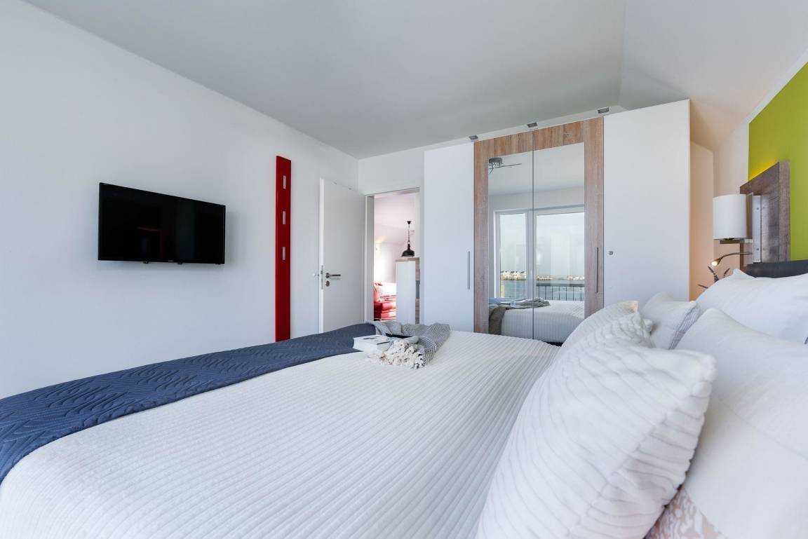 Die Fewo Kapitän James Cook in Olpenitz bietet Platz für 5 Personen, beeindruckt mit einem Wasserbett, XXL-Wellnessdusche und einem traumhaften Blick auf die Ostsee – ideal für entspannende Urlaubstage.