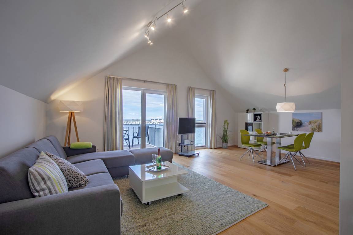 Bei der 2-Zi-Ferienwohnung REEDER's TOPP handelt es sich um eine Wohnung mit wirklich spektakulärem Blick auf den Hafen, die Schlei und die Ostsee! Sie befindet sich im 3. Ober- bzw. Dachgeschoß und thront damit praktisch wie ein kleines Haus über dem gesamten OstseeResort!
