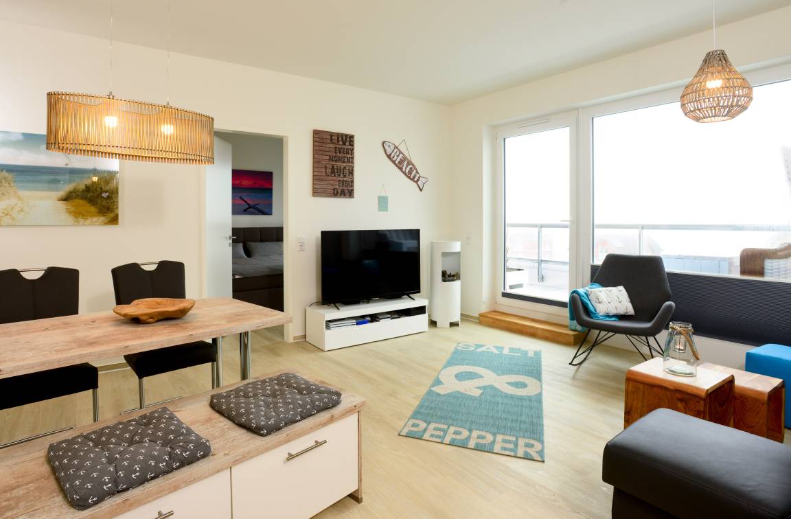 Die im März 2018 neu errichtete Penthouse-Wohnung verfügt über insgesamt 63 Quadratmeter Wohnfläche. Hier können bis zu vier Gäste ihren Urlaub im Ostsee Ambiente genießen.