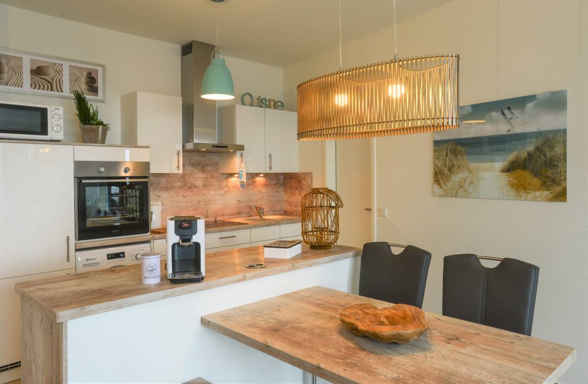 Sollte das Wetter mal nicht mitspielen wird Ihnen im Marina Loft dennoch sicher nicht langweilig. Bücher, Gesellschaftsspiele und eine Playstation 4 Pro sorgen für eine abwechslungsreiche Unterhaltung. Auf den Fernsehern gibt es auch SkyTV (einige Sky Sender, nicht das Komplett Paket). Die Küche ist zum Wohnbereich hin offen gestaltet und verfügt durch ihre Kücheninsel über viel Arbeitsfläche.