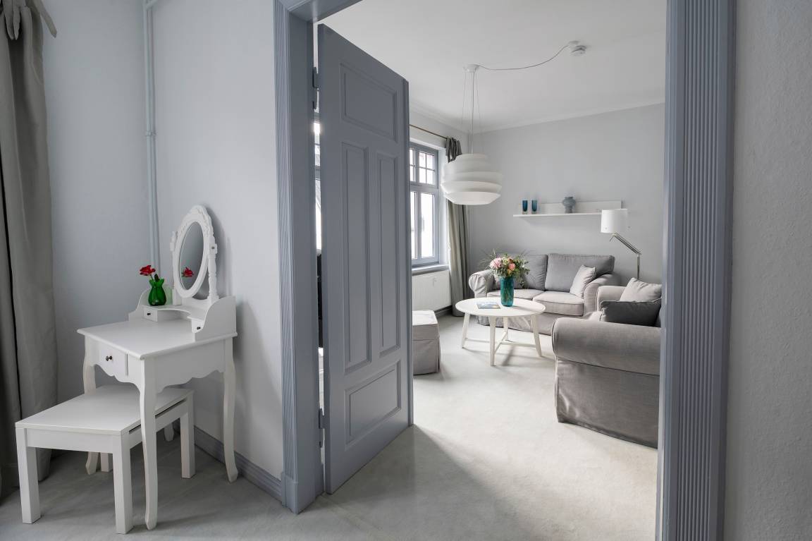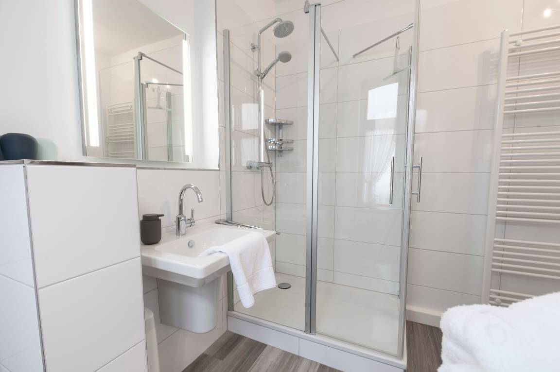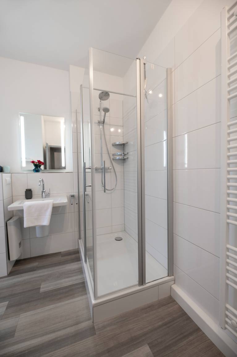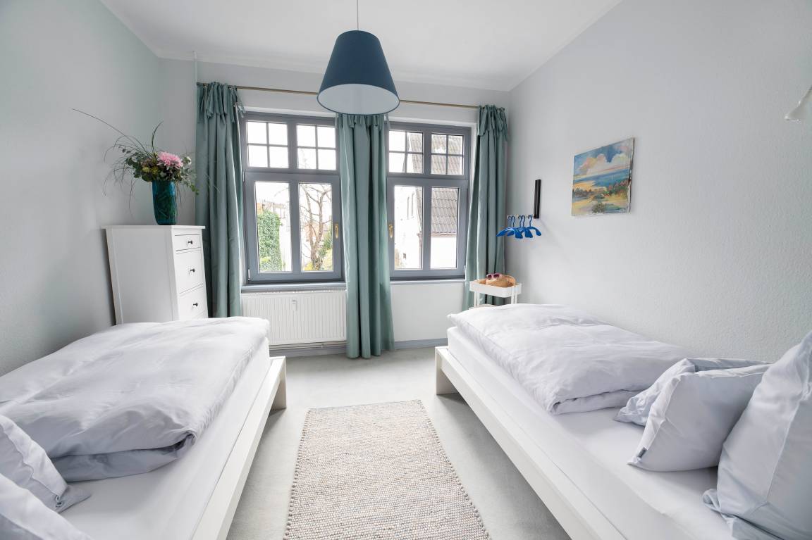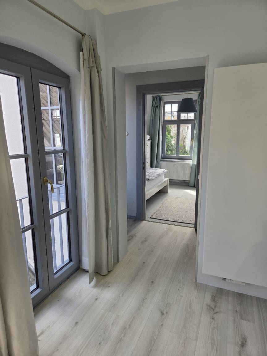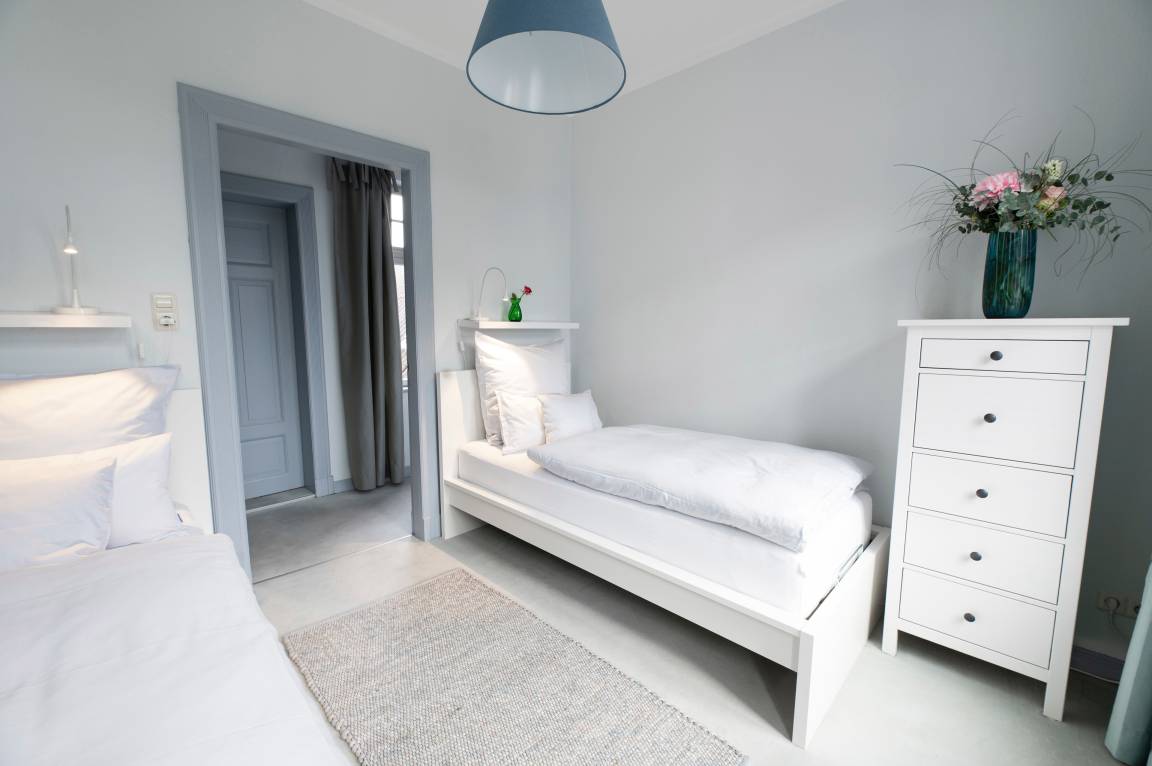 Ausgestattet ist die Wohnung mit Digital TV, WLAN, großzügiger Sitzgruppe, Sideboard im Wohnzimmer, Küche mit Induktion-Ceranfeld/ Backofen/ Dampfgarer/ Geschirrspülmaschine/ Kaffeevollautomat und Filtermaschine; das Bad besteht neben WC und Waschbecken aus komfortabler überlanger Dusche, Fenster zum Innenhof und genügend Ablageflächen; Schlafzimmer haben Schränke, Kommode, Frisiertisch sowie ein Boxspringbett 180 x 200 cm im Elternschlafzimmer und 2 Einzelbetten 90 x 200 cm im 2. Schlafzimmer.