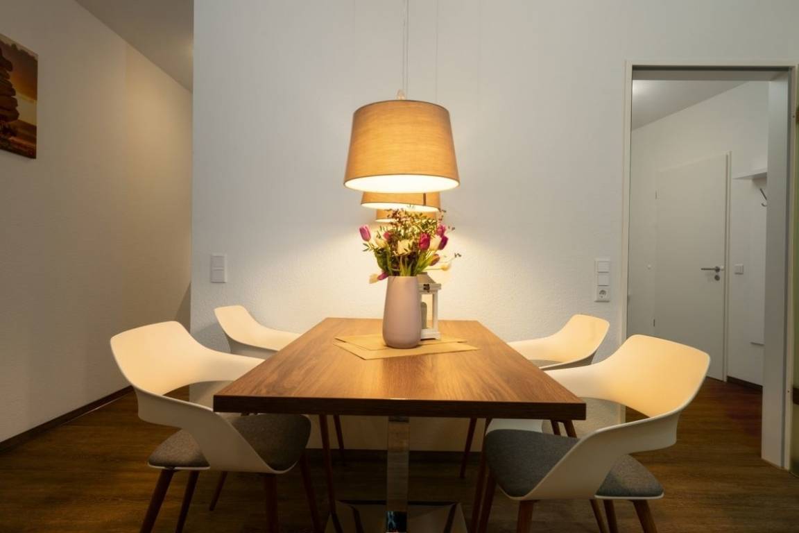 3-Zimmer-Ferienwohnung für 4-6 Personen, 72 m², 2 Schlafzimmer mit Doppelbett, Wohn-Schlafraum mit Doppelbettcouch, separater Essplatz, voll ausgestatteter Küchenbereich mit Geschirrspüler, Bad mit Dusche/WC, Terrasse, SAT-TV, W-LAN. Sky Bundesliga HD, Sport1 HD, Cinema HD, Disney Cinemagic.