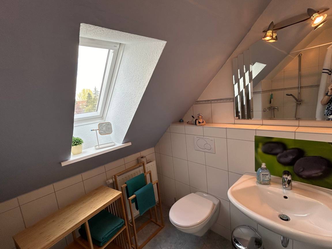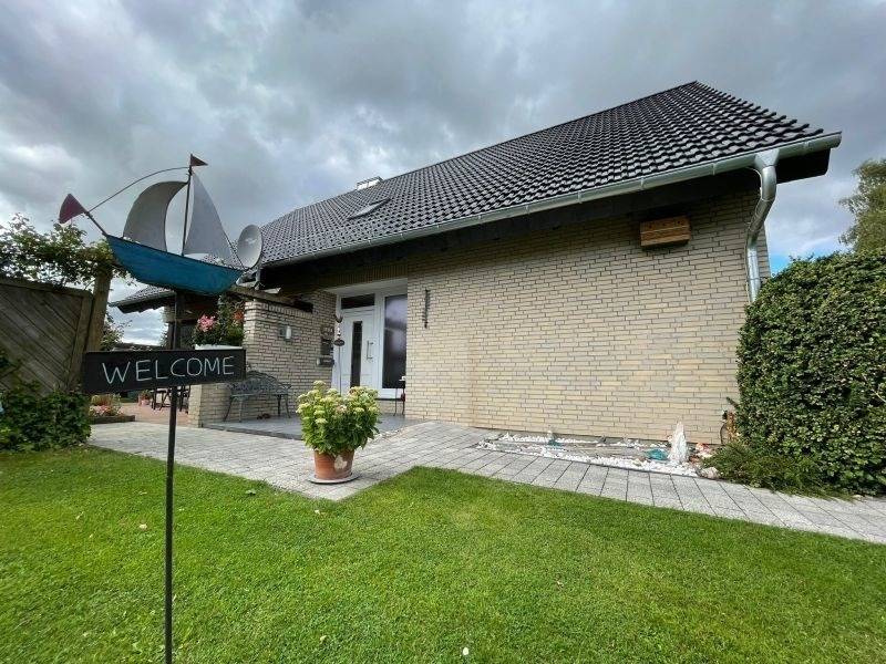 Das gepflegte Einfamilienhaus liegt in zentraler Lage in einer ruhigen Sackgasse. Die Ferienwohnung befindet sich im Obergeschoss und ist mit einer separaten Eingangstür zu erreichen. Der Garten kann genutzt werden. Das Haus verfügt über eine gepflegte Gartenanlage mit Sitzecken und Liegen. Strandkorb und Gartengrill stehen bereit. Unterstellmöglichkeiten für Motor- und Fahrräder sind vorhanden. Ein PKW-Stellplatz befindet sich direkt am Haus.
