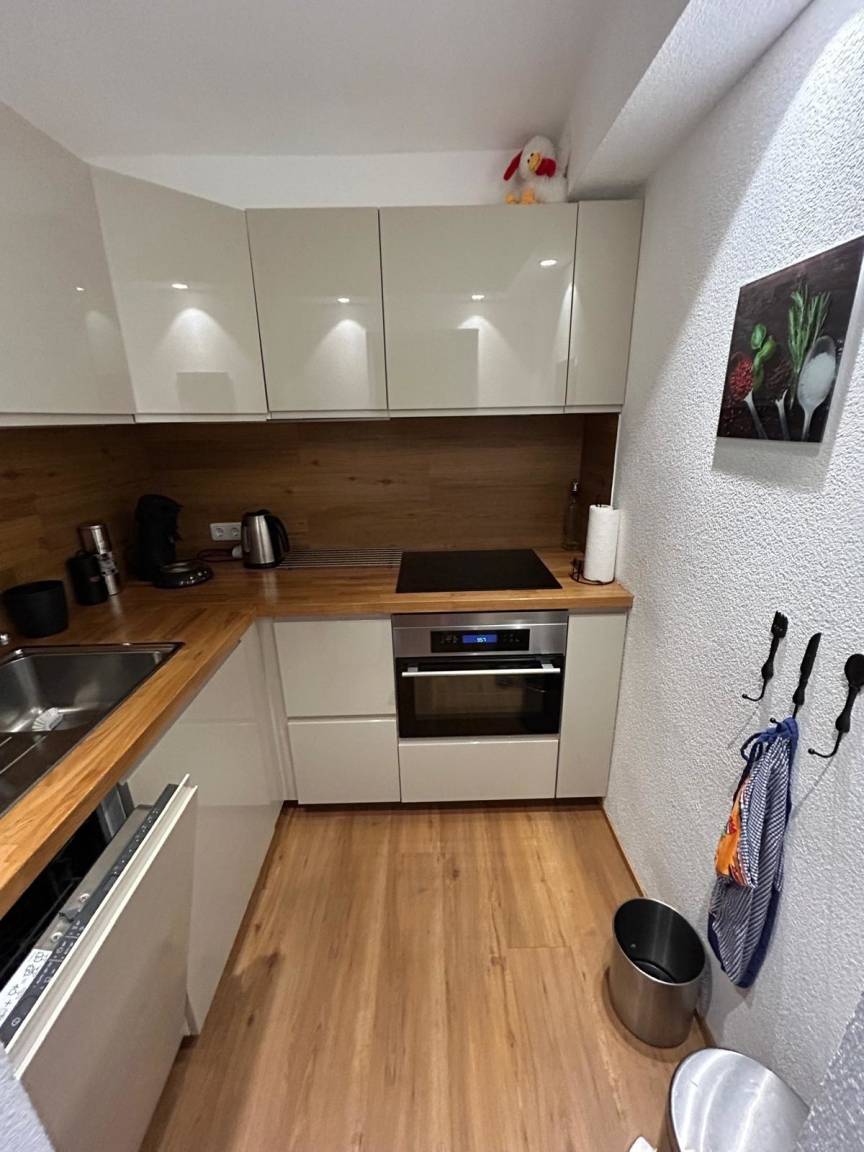 Besonders beliebt bei den Gästen der Ferienwohnung: der schöne Balkon. Im Urlaub kochen? Los geht's, die Küche ist gut ausgestattet, sogar mit einer Spülmaschine.
