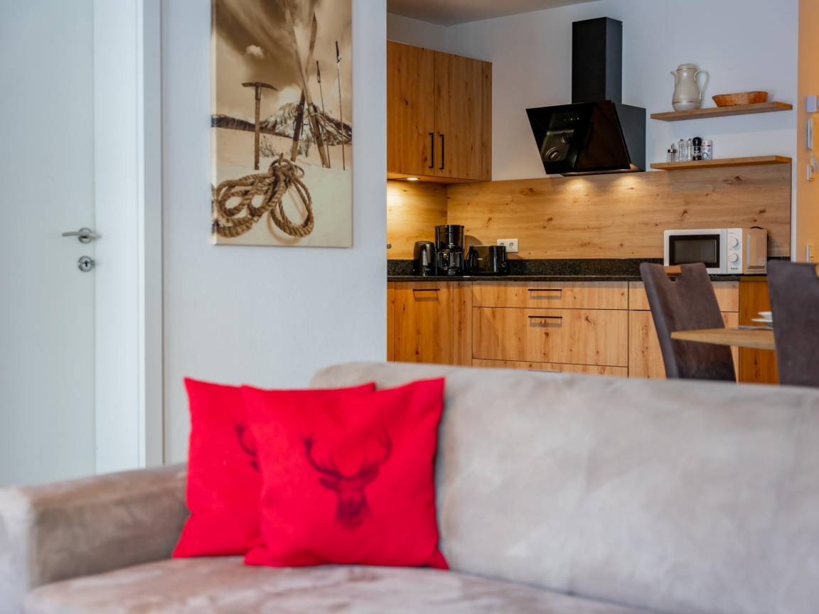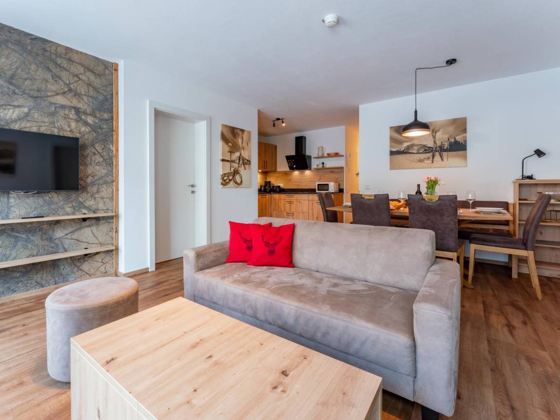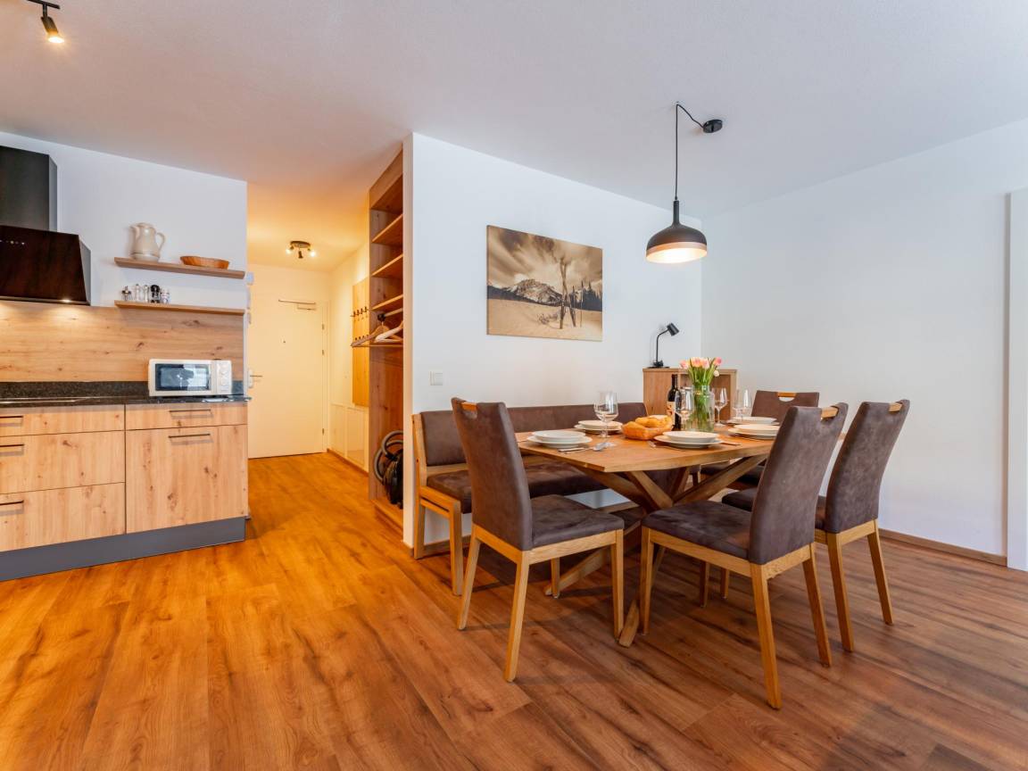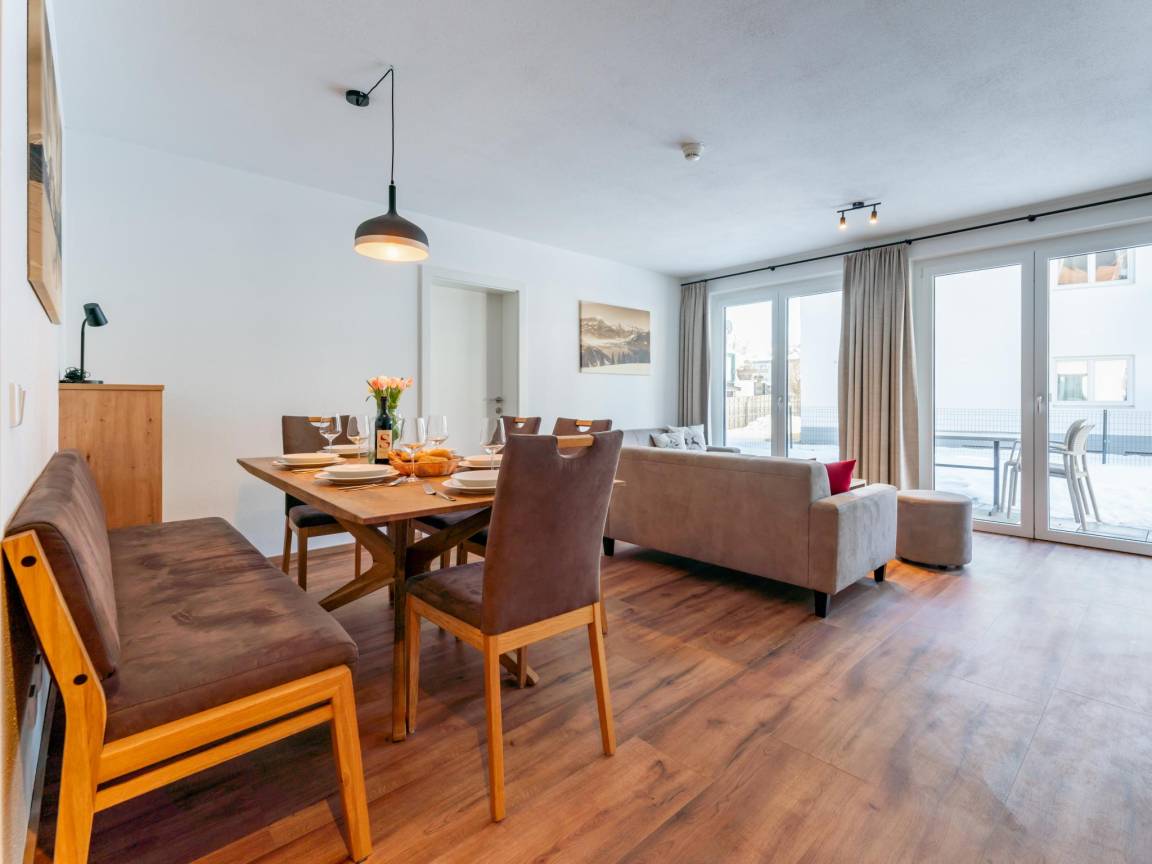 Hausbeschreibung : Diese bequem eingerichtete Wohnung in einem kleinen Appartementkomplex befindet sich im Erdgeschoss. Die Lage im Zentrum von Kaprun ist sowohl im Sommer als auch im Winter ideal. Das geräumige Wohnzimmer mit Sitzecke und Esstisch bietet Platz für ein gemütliches Zusammensein. Im Wohnzimmer und in den Schlafzimmern gibt es einen fixen Internetanschluss und Ihr Auto können Sie in der Gemeinschaftsgarage mit Skiraum abstellen. Die Wohnung verfügt über einen eigenen Garten