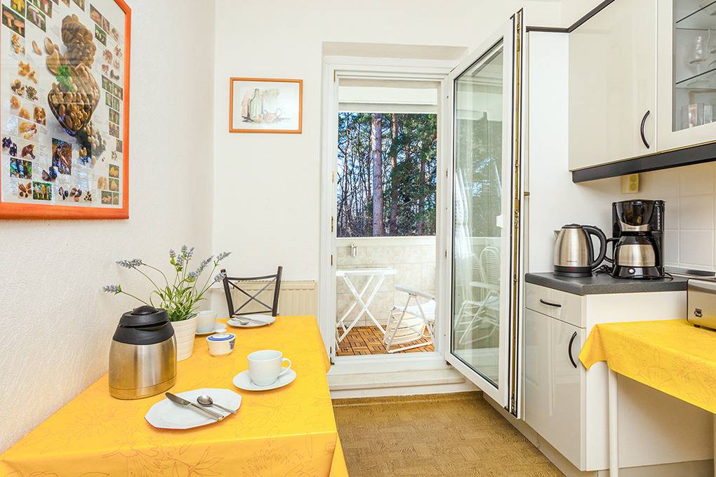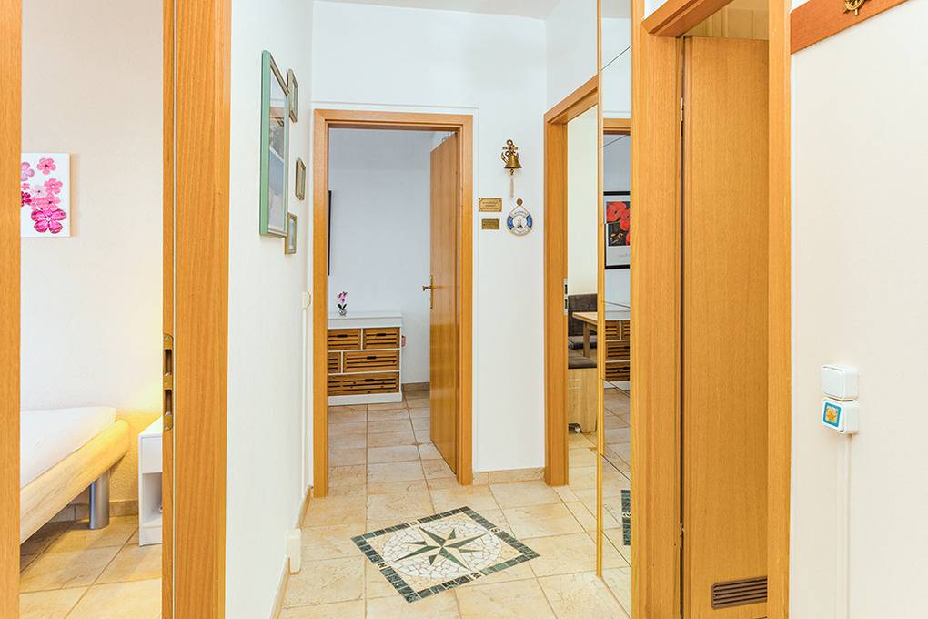 D 23.24 Wohnung 2-4 Pers.: Großzügige 3-Zimmerwohnung mit 63 qm Wohnfläche. 1. Etage: Schöner Wohn-/Essraum mit Couchgarnitur, Sat-TV, Radio/CD, Esstisch, Einbauküche (Backofen). Doppelzimmer. Einzelzimmer mit Schlafsofa (1 Erw. Person). Bad/WC. Balkon mit Sitzmöbeln.