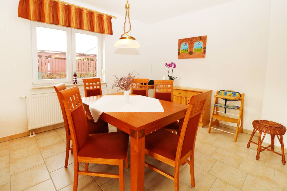 Der großzügige und helle WOHN- und ESSBEREICH ist lichtdurchflutet. Ein gemütliches Sofa und ein Sessel laden zu Abenden in familiärer Runde ein. Für Unterhaltung sorgen Flachbild-TV, Radio, CD-/DVD-Player und WLAN. Das Sofa kann auch als Schlafmöglichkeit für eine Person genutzt werden. Am Esstisch finden bis zu 6 Personen Platz. Ein Hochstuhl ist vorhanden.