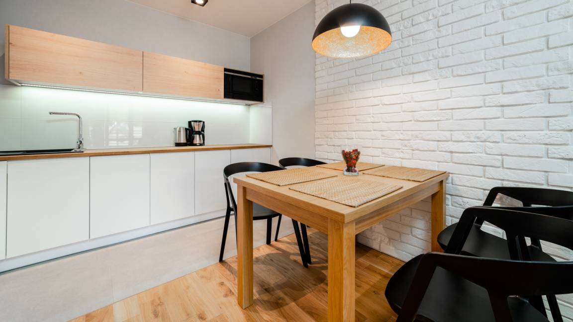 Alle angebotenen Apartments verfügen über eine voll ausgestattete Küchenzeile und ein elegantes Badezimmer mit Dusche.