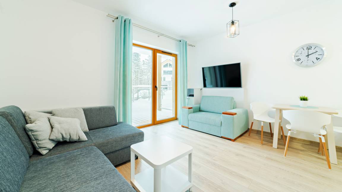 Hunde sind in ausgewählten Apartments willkommen. Der Aufpreis für die Unterbringung eines Haustieres beträgt 100 PLN (einmalige Gebühr). Gäste, die mit einem Hund übernachten möchten, werden gebeten, sich vorab telefonisch an die Mitarbeiter des örtlichen Büros in Karpacz zu wenden (die Telefonnummer finden Sie auf unserer Website im Reiter KONTAKT).