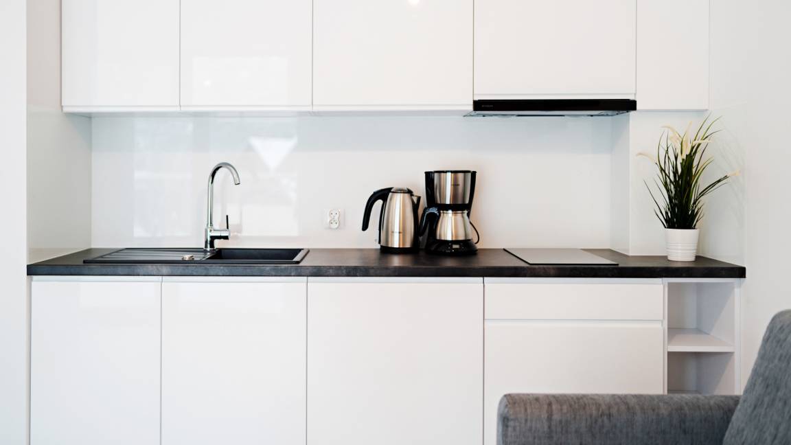 Jedes Apartment verfügt über eine gut ausgestattete Küchenzeile und Internetzugang.