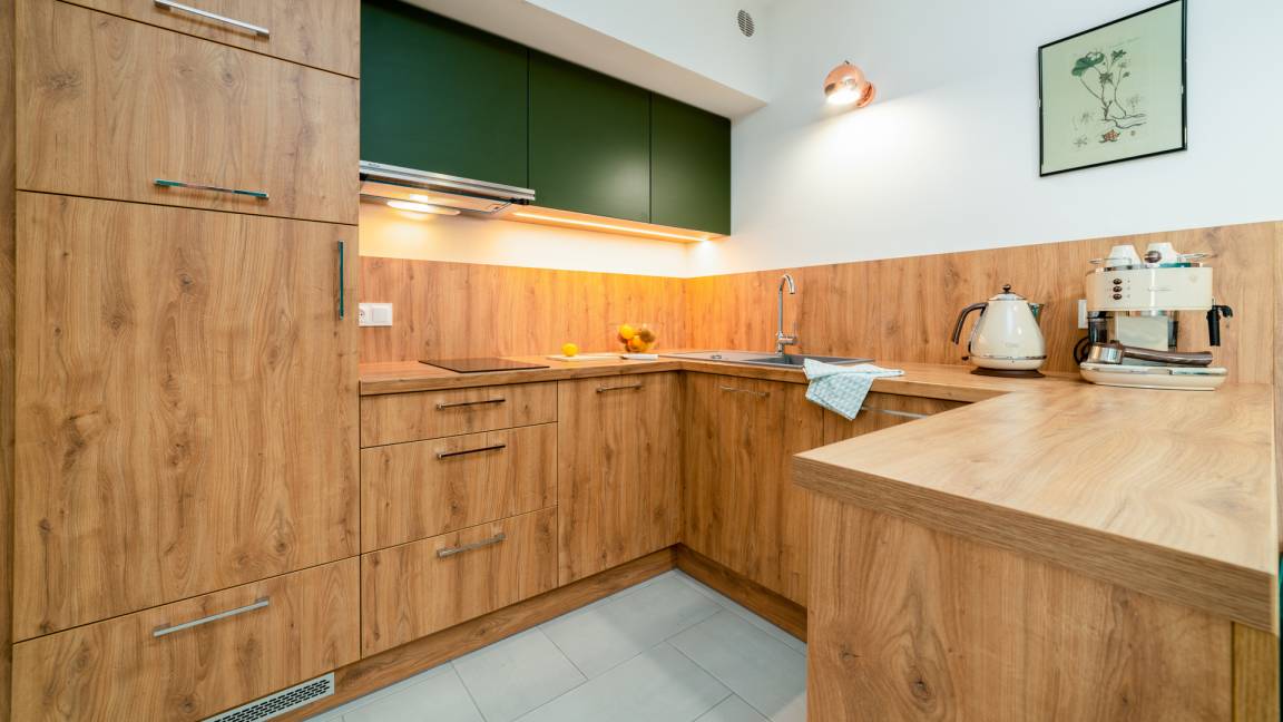 Alle angebotenen Apartments verfügen über eine voll ausgestattete Küchenzeile und ein elegantes Badezimmer mit Dusche.