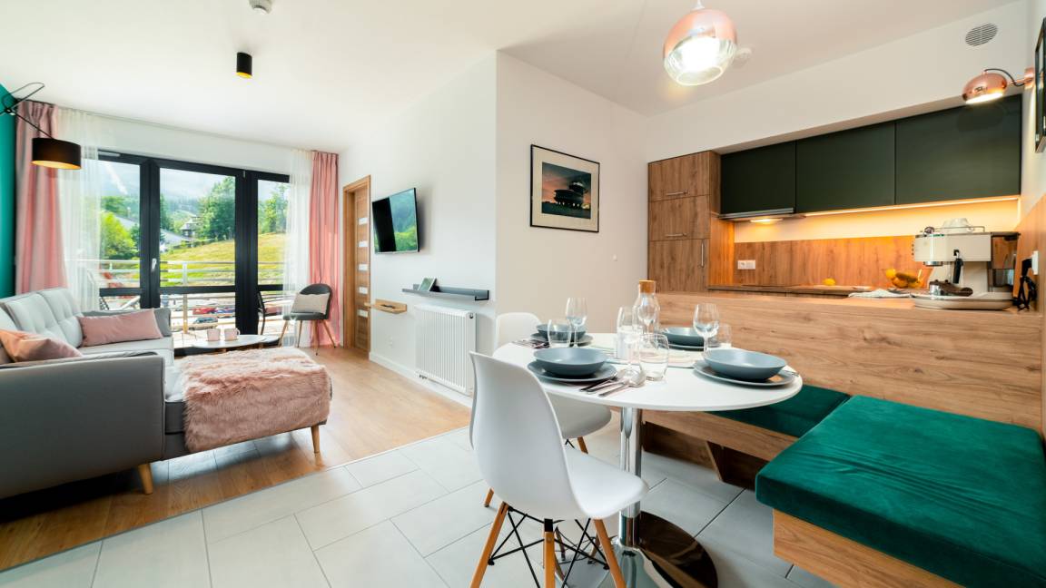Die Sun & Snow Triventi Mountain Residence Apartments befinden sich in der Ul. Riesengebirge 13. Von dem auf der Südseite gelegenen Gelände hat man einen schönen Blick auf die Schneekoppe – den höchsten Gipfel des Riesengebirges.