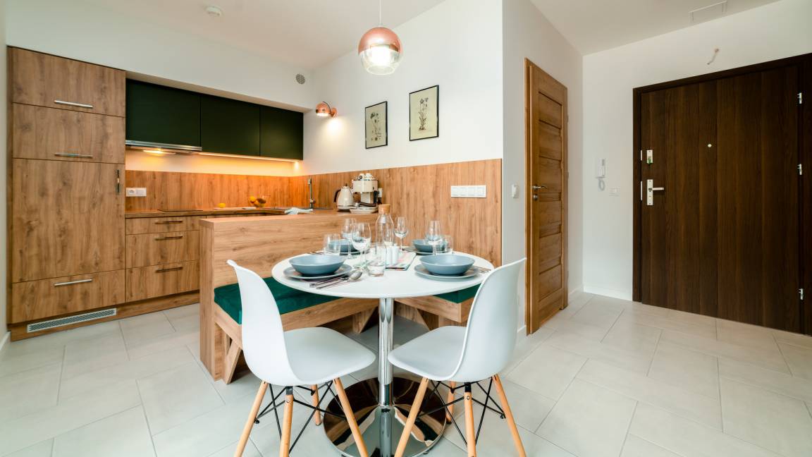 Zu den gewählten Apartments darf man mit dem Hund ankommen. Die zusätzlichen Kosten des Aufenthalts mit einem vierbeinigen Freund betragen 100 PLN (Einzelgebühr). Die Gäste, die den Aufenthalt mit dem Hund planen, bitten wir um eine frühere Kontaktaufnahme mit unserem Service im lokalen Büro.