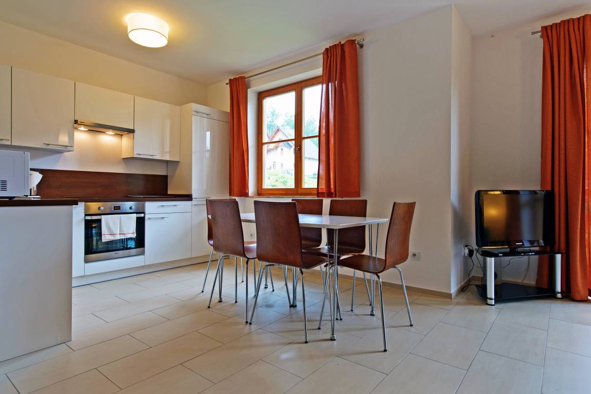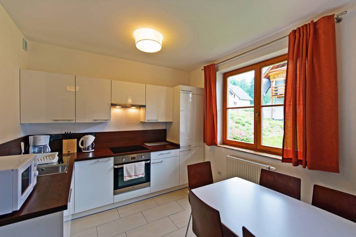 Jede Wohnung verfügt über eine voll ausgestattete Küchenzeile und einen Kamin (Holz wird nicht gestellt).