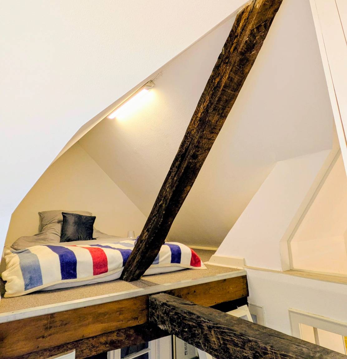 Exklusive Schlafempore: Wie in einem Boutique-Hotel erwartet Sie eine private Schlaf-Lounge (1,40 m Matratze) unter dem Dachfirst - ein intimer Rückzugsort für maximale Privatsphäre.
