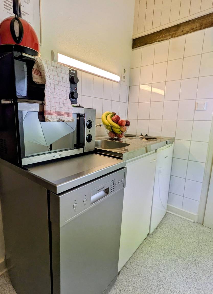 Küche & Kulinarik: Vollausgestattete Kitchenette inklusive umfangreichem Equipment (Geschirr/Töpfe), um mühelos Menüs für bis zu vier Personen zu kreieren.