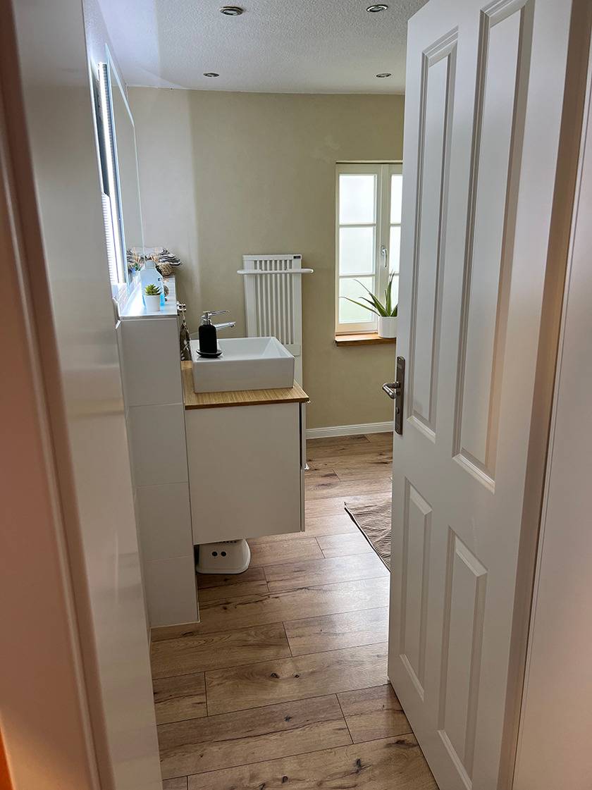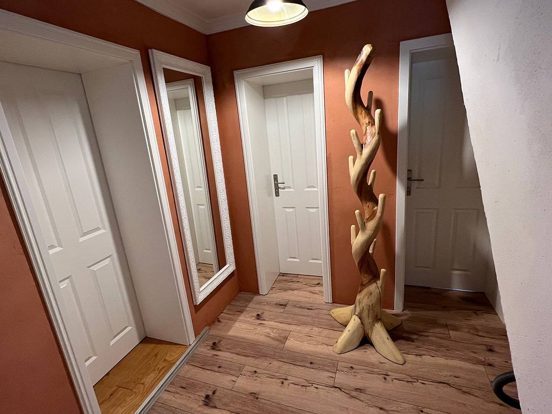 Das Apartment 001 befindet sich in einer ruhigen Naturrandlage Kassels in einem Fachwerkhaus aus dem 19. Jahrhundert, das schrittweise unter Zuhilfenahme biologischer Werkstoffe (Lehm, Stroh, Holz) restauriert wird. Geheizt wird ausschließlich mit 100 % Öko-Strom; damit entspricht dieses Apartment in besonderer Weise nachhaltigem Wohnen, was sich zudem positiv im Raumklima niederschlägt.