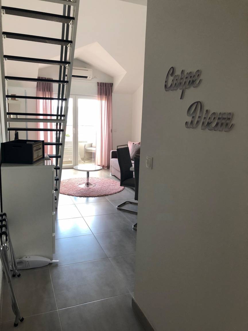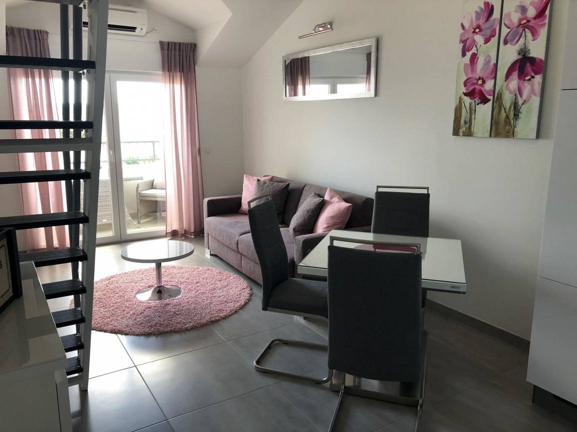 Liebevoll gemütlich eingerichtetes 4 Sterne Studio-Apartment an. Direkt am Wasser (100m) mit überdachtem Balkon (Loggia), direktem Meerblick und zusätzlicher Dachterrasse mit einer Galerie.Der Weg zum Strand ist sehr kurz