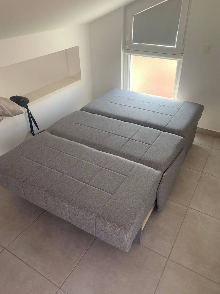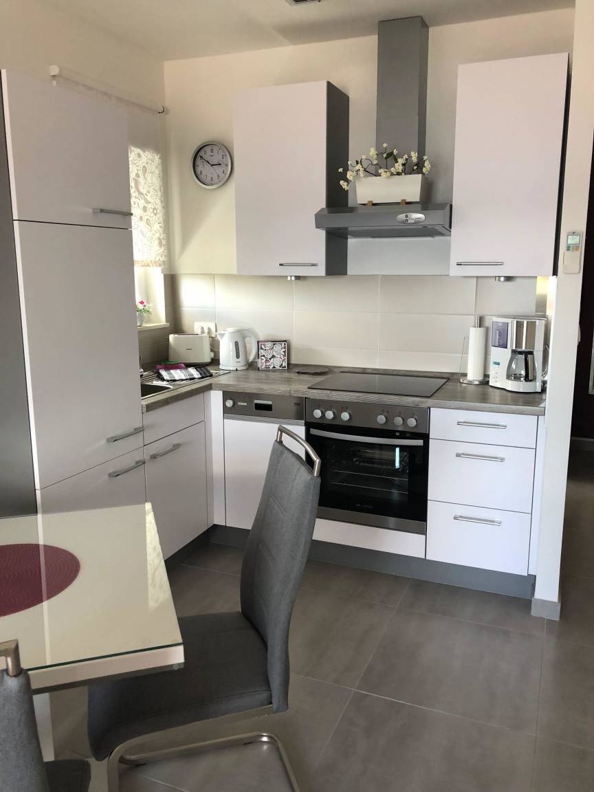 Das 43 qm große Apartment besteht aus einem Wohnraum mit Küche, Balkon (Loggia), Galerie, Dachterrasse und Bad. Die Küche enthält auch einen Backofen sowie eine Spülmaschine. Die Galerie und die Dachterrasse sind über die Wohnung erreichbar oder aber auch über das Treppenhaus. Es gibt SAT-TV und eine Klimaanlage. Insgesamt sind 2 Fernseher im Apartment. Beides Flat-TV, einer davon mit Smart-TV Funktion. Internetflat per WLAN ist inklusive. Eine Waschmaschine ist auch vorhanden. Ein großer Gasgrill zur Nutzung auf der Dachterrasse ist vorhanden und kann nach Absprache genutzt werden. Eine Liege zum Sonnen ist auf der Dachterrasse auch vorhanden.