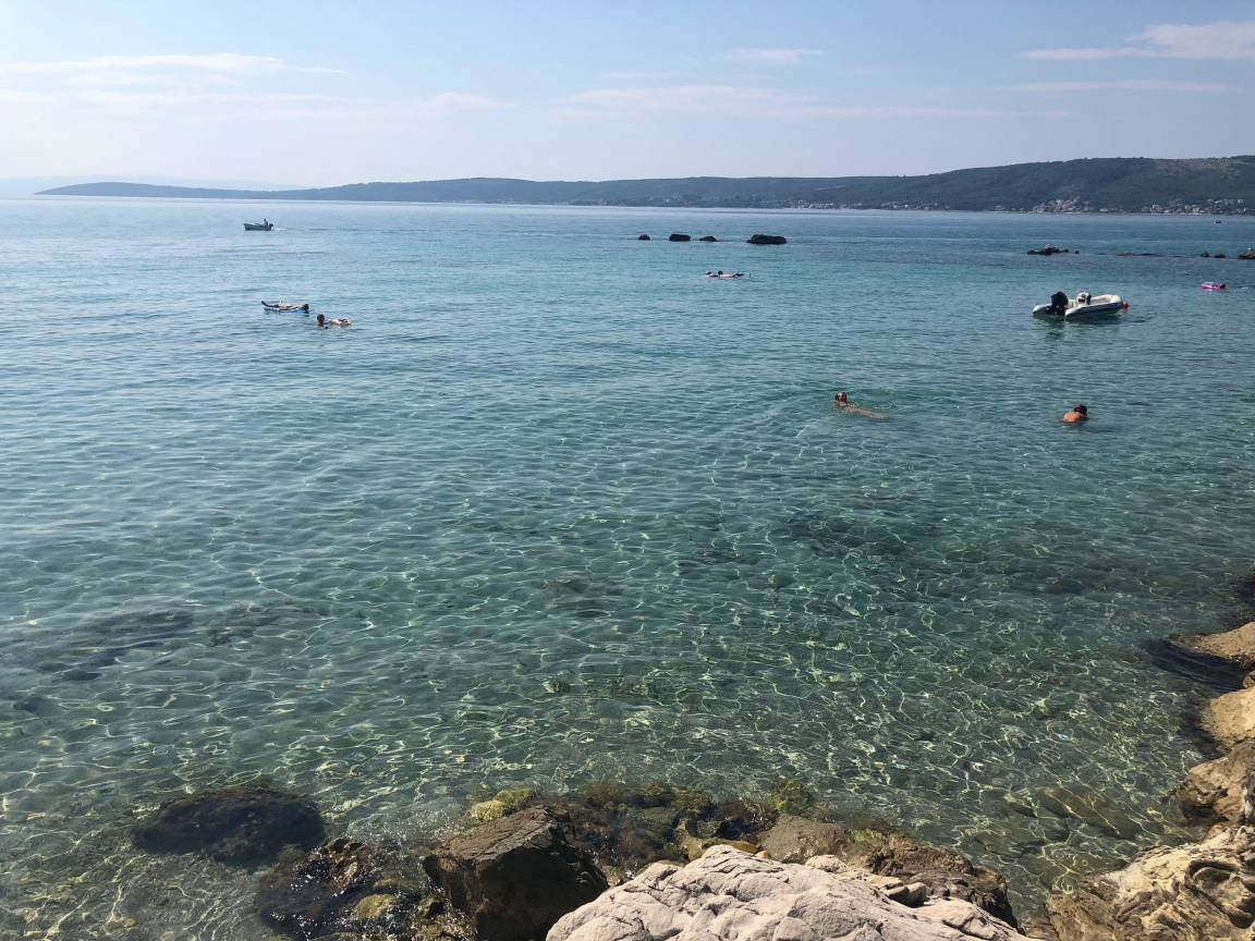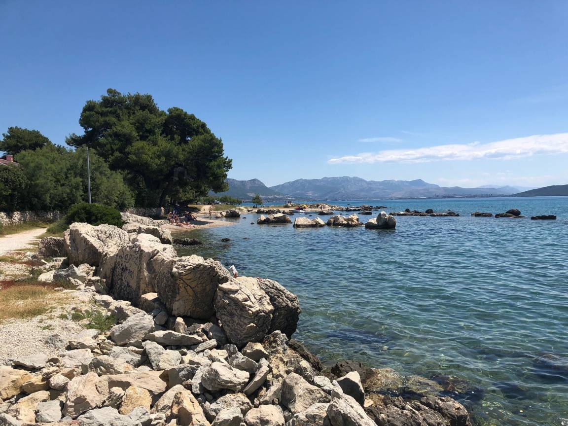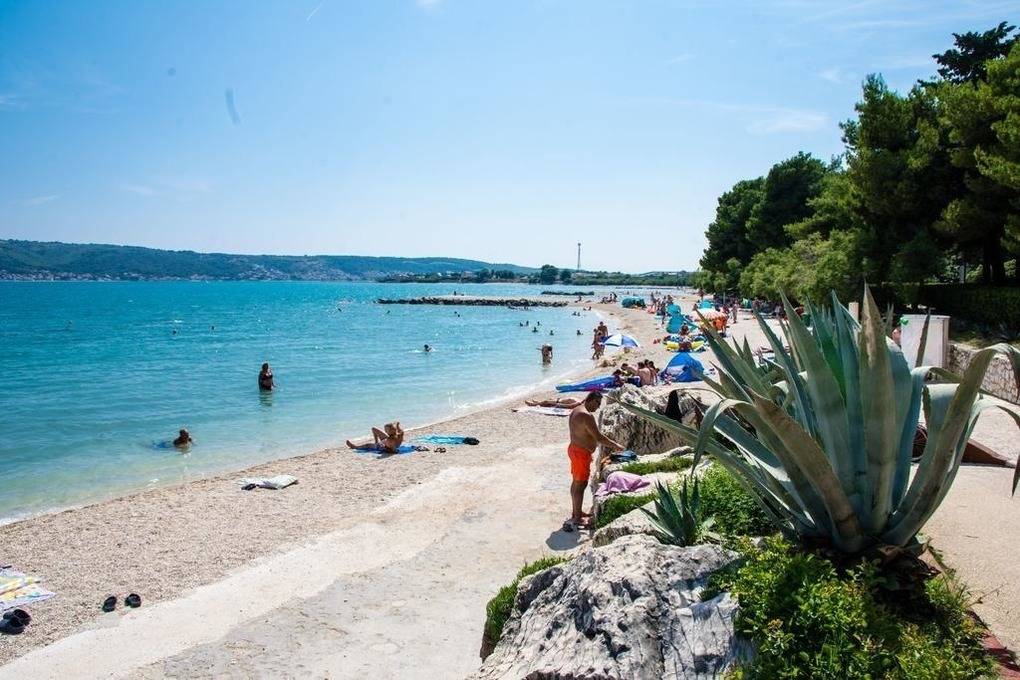 In der Nähe (5 Gehminuten) befindet sich ein kleiner Supermarkt wo man die wichtigsten Sachen erwerben kann, ein weiterer Markt sowie ein toller Bäcker befinden sich 8 Gehminuten entfernt. Der Weg zum Strand ist sehr kurz (1 Minute zu Fuß), daher sehr kurze Wege um z.B. WC zu besuchen. Ein Restaurant befindet sich 550m entfernt. Zur Bushaltestelle sind es 10 Gehminuten. Von dort fährt alle 20 min ein Bus Richtung Trogir oder Split, Restaurants sowie z.B. Crêperie erreichen Sie in 15-20 Gehminuten