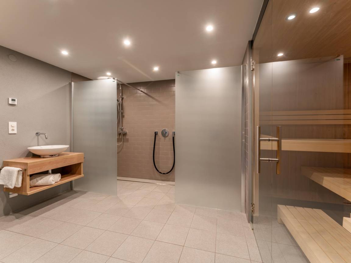 Souterrain: Badezimmer mit Dusche, Toilette , Waschraum mit Wäschetrockner, Waschmaschine , Saunaraum