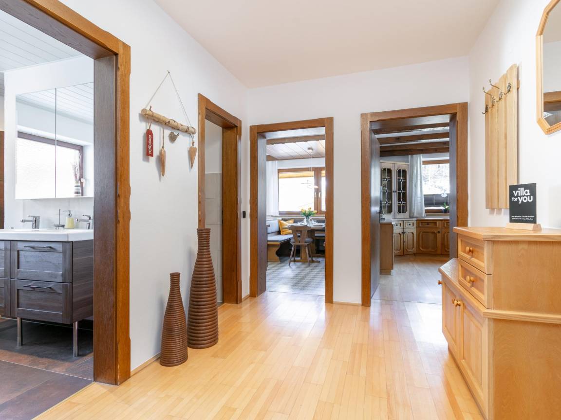 Hausbeschreibung : Diese geräumige Wohnung im ersten Stock bietet ein gemütliches Wohnzimmer und eine voll ausgestattete Küche. Drei komfortable Schlafzimmer sorgen für erholsame Nächte, damit Sie frisch in den Tag starten können. Genießen Sie Ihre Mahlzeiten auf dem Balkon mit Blick auf die idyllische Blumenwiese oder entspannen Sie im großen Garten im Sommer. Die Skibushaltestelle ist nur 300 Meter entfernt – ideal für Ihren Aktivurlaub!