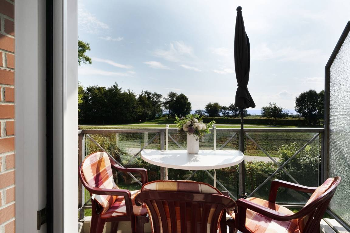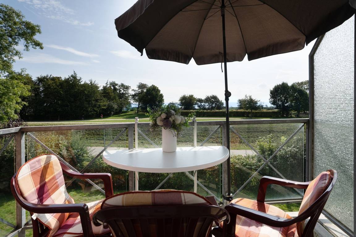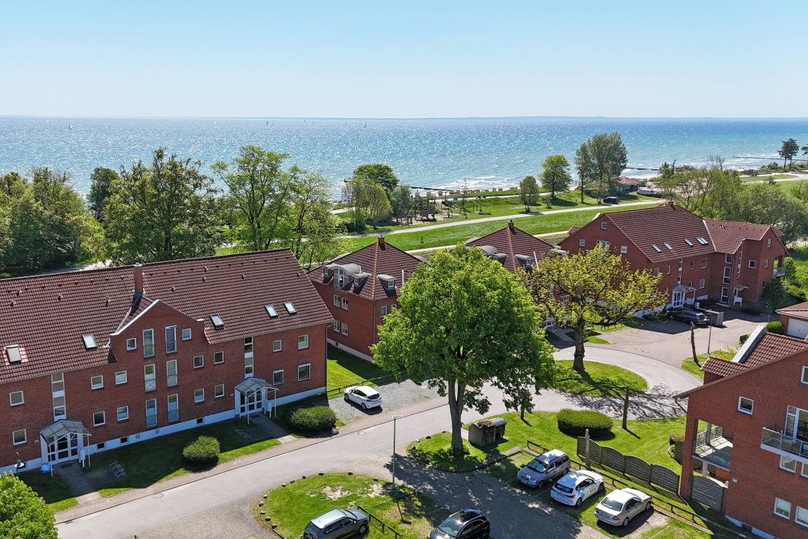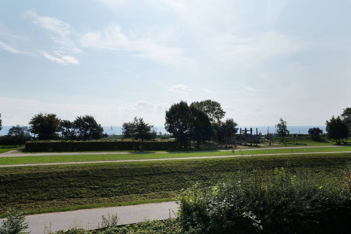Traum-Lage: Schicke 2-Zimmer-Ferienwohnung in der 1. Reihe zur Ostsee in Kellenhusen für bis zu 4 Personen im 1. Stock mit Balkon, einer Wohnfläche von ca. 47 m² – und Meerblick.