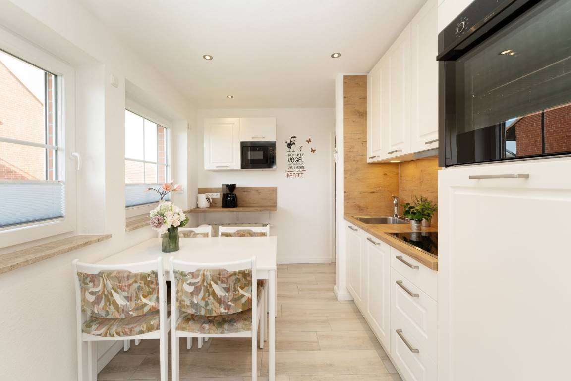 „Sehr modern ausgestattete Fereienwohnung für den absoluten Wohlfühlfaktor. Bad und Küche sind top ausgestattet. Die Dusche ist auch nach langen Strandabenden noch warm;-). Wenn man morgends das elektrische Außenrollo hochlässt kann man direkt das Meer sehen. Sehr zu empfehlen“